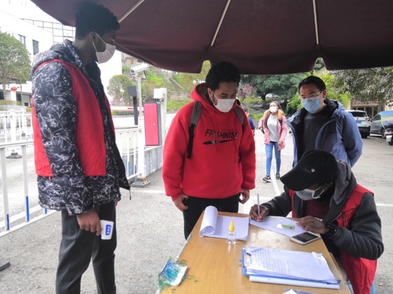 作为西南大学“洋雷锋”志愿服务队的一员,恩伊阿祖·弗兰卡·阿丹的工作除了参与门岗执勤外,还定期为学生宿舍区域消毒,给留校学生派发口罩。她向记者表示:“我们非常高兴能为控制疫情做出自己的贡献。宿舍的保安叔叔和阿姨每天晚上都要记录每个学生的体温。网上课程也在有序进行。我衷心感谢中国为控制疫情所做的努力。”