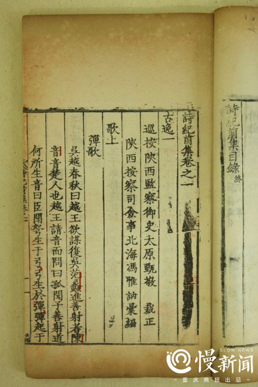 近日,国家文化和旅游部公布了第六批《国家珍贵古籍名录》。西南大学图书馆馆藏《汉书一百卷》(明)崇祯十五年(1642)毛氏汲古阁刻本、《诗纪一百三十卷前集十卷外集四卷别集十二卷》(明)嘉靖三十九年(1560)甄敬刻本、《古赋辨体十卷》(明)嘉靖十六年(1537)顾可久等刻本3部68册古籍入选,进一步增添了图书馆“全国古籍重点保护单位”的含金量。至此,图书馆已有25部444册古籍入选《国家珍贵古籍名录》。