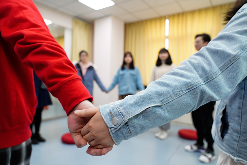 1月27日,在西南大学心理健康教育与服务中心,留校学生在老师的带领下参加“我们在一起”团辅活动。
