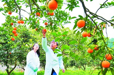 连日来,在位于重庆市北碚区的西南大学柑桔研究所(中国农业科学院柑桔研究所)内,国家现代农业(柑桔)产业技术体系岗位科学家郑永强带着学生忙着测量和收集各种数据,为“重庆市北碚区智慧柑桔示范园”做好准备。图为2月5日,郑永强教授和研究生们一起查看柑桔长势。