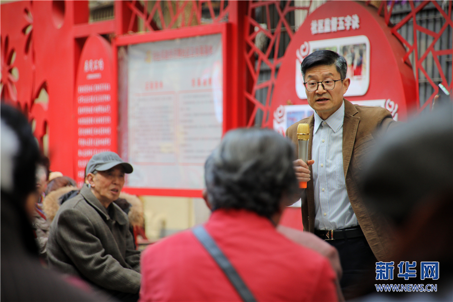 教授西南大学马克思主义学院教授张朝晖为社区党员群众讲党史。新华网 刘磊 摄
