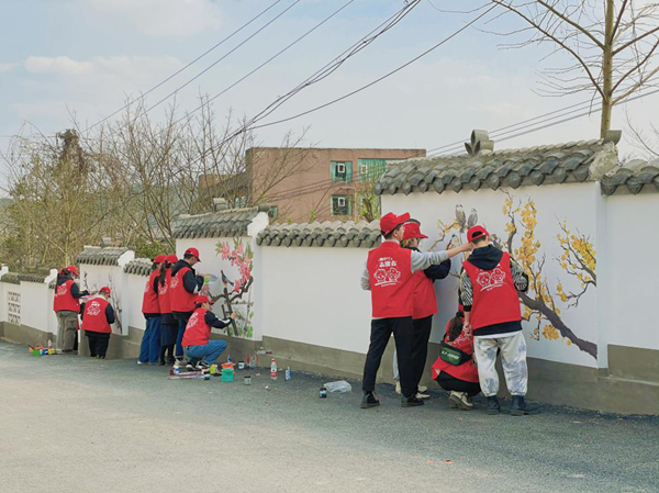 活动中,志愿者围绕社会主义核心价值观,设计独具风格的墙绘方案。来自美术学院等20余名师生协调配合,预计完成“一批乡村艺术外墙”“一批乡村艺术长廊”等作品,为村容村貌增色。