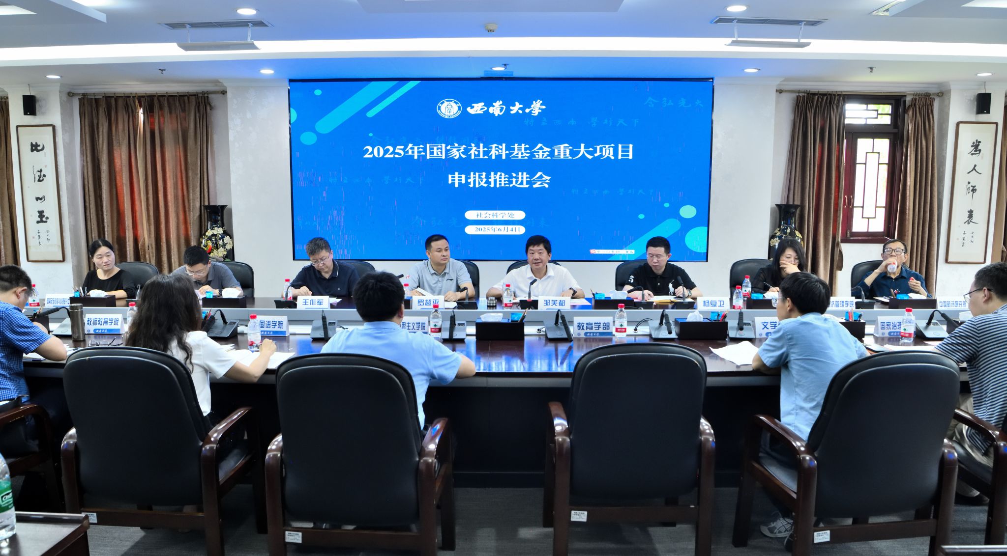 6月4日下午,学校召开2025年国家社科基金重大项目申报推进会。副校长邹芙都出席会议,有关二级教学科研单位相关负责人、党政办公室以及社会科学处相关人员参加会议。会议由社会科学处处长罗超平主持。