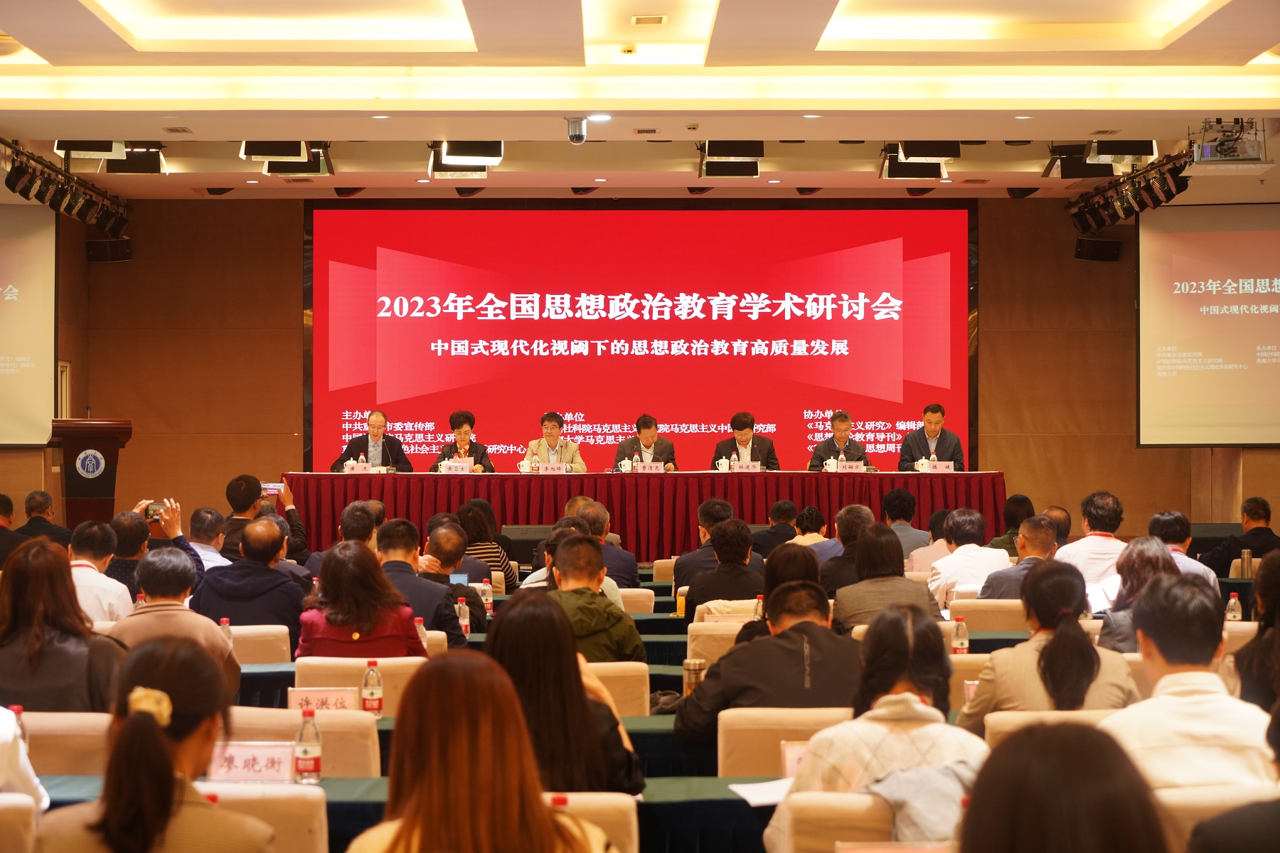 会议由中共重庆市委宣传部、中国社会科学院马克思主义研究院、重庆市中国特色社会主义理论体系研究中心、西南大学联合主办,中国社会科学院马克思主义研究院马克思主义中国化研究部、学校马克思主义学院共同承办,《马克思主义研究》编辑部、《思想理论教育导刊》编辑部、《重庆日报》思想周刊协办,与会专家学者共同围绕“中国式现代化视阈下的思想政治教育高质量发展”主题展开学术交流和理论探讨。
