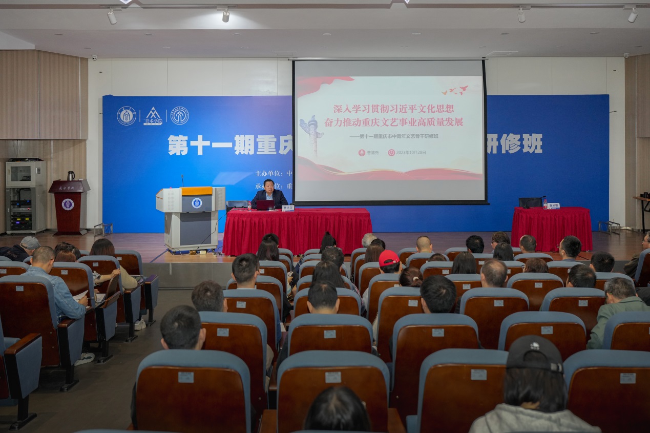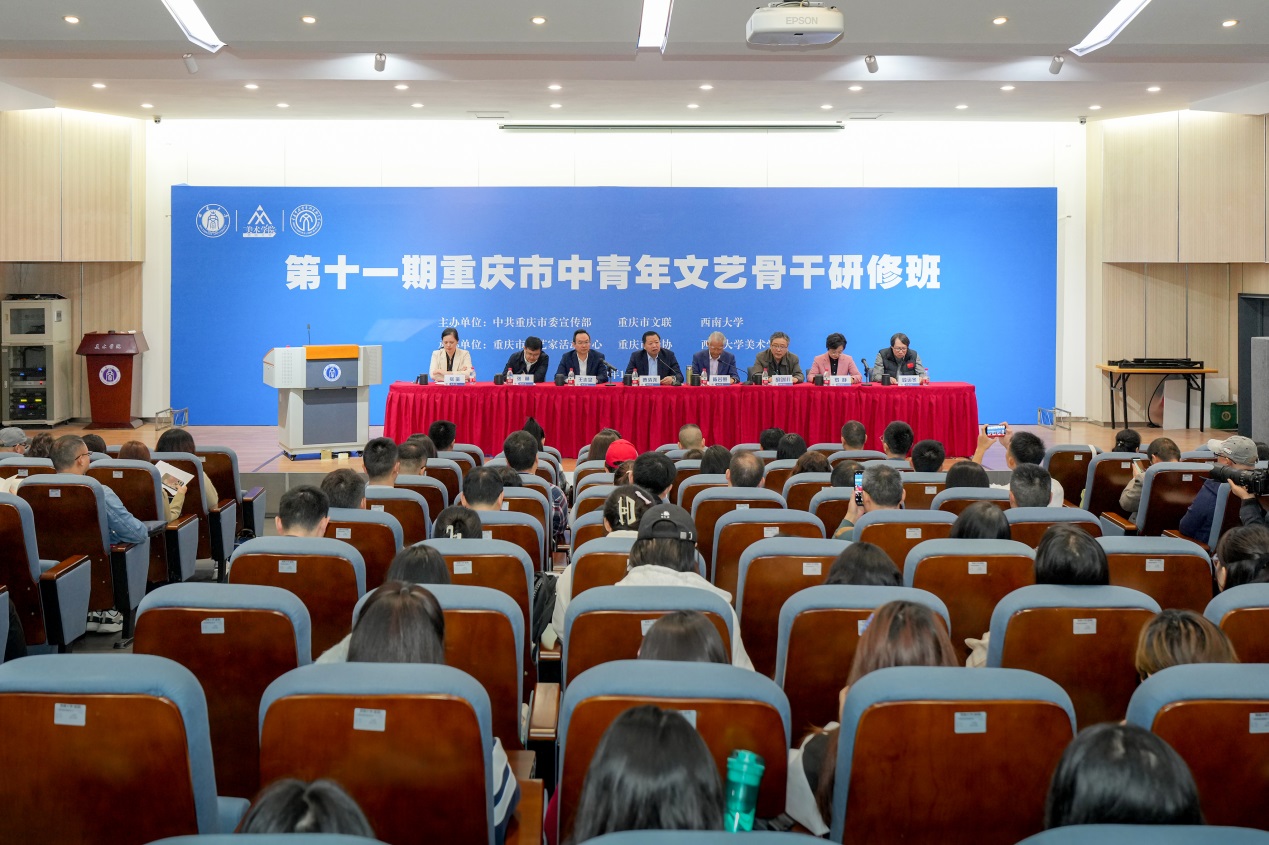 10月28日上午,由重庆市委宣传部、重庆市文联、西南大学主办,重庆市文艺家活动中心、重庆市摄协、西南大学美术学院承办的第十一期重庆市中青年文艺骨干研修班在学校开班。市委宣传部常务副部长曹清尧,市文联党组书记、副主席陈若愚,学校副校长王志坚,市委宣传部、市文联相关处室负责人,研修班学员,美术学院师生近300人参加开班仪式,开班仪式由陈若愚主持。