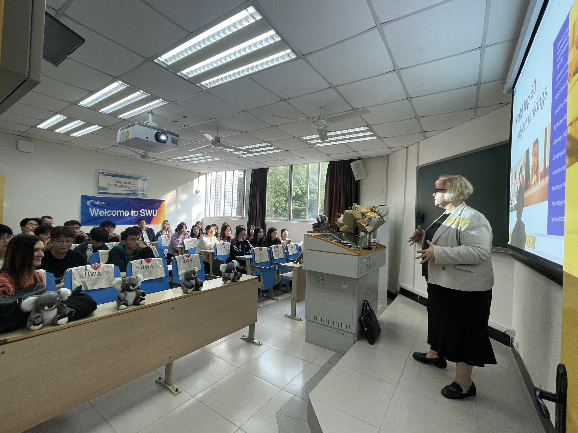 豪威尔表示,这是她首次访问西南大学,两校历史相仿,学科设置也高度匹配。她表示,在校长阿米特·查克玛(Amit Chakma)的带领下,西澳大学十分重视国际化建设,也十分珍视与西南大学的友谊。今年是两校建立伙伴关系十周年,她特意带来了以西澳校徽为灵感设计制作的十周年天鹅雕塑,既是对过去十年的纪念,也是对未来持续合作的期待。