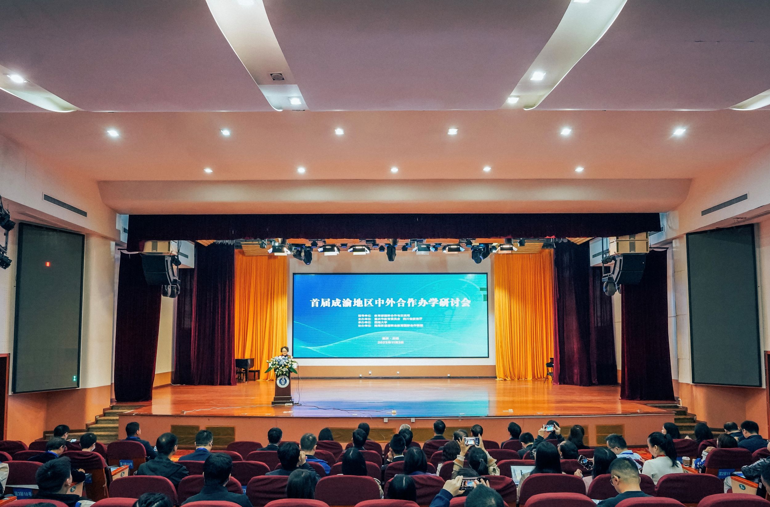 为深入学习贯彻党的二十大精神和习近平新时代中国特色社会主义思想,落实“推动成渝地区双城经济圈建设”国家战略,提升成渝地区高校中外合作办学质量,11月3日,由重庆市教委、四川省教育厅联合主办,学校承办的首届成渝地区中外合作办学研讨会如期举行。来自成渝两地共83所高校的190余位会议代表齐聚一堂,共同探讨对中外合作办学的理解和实践。