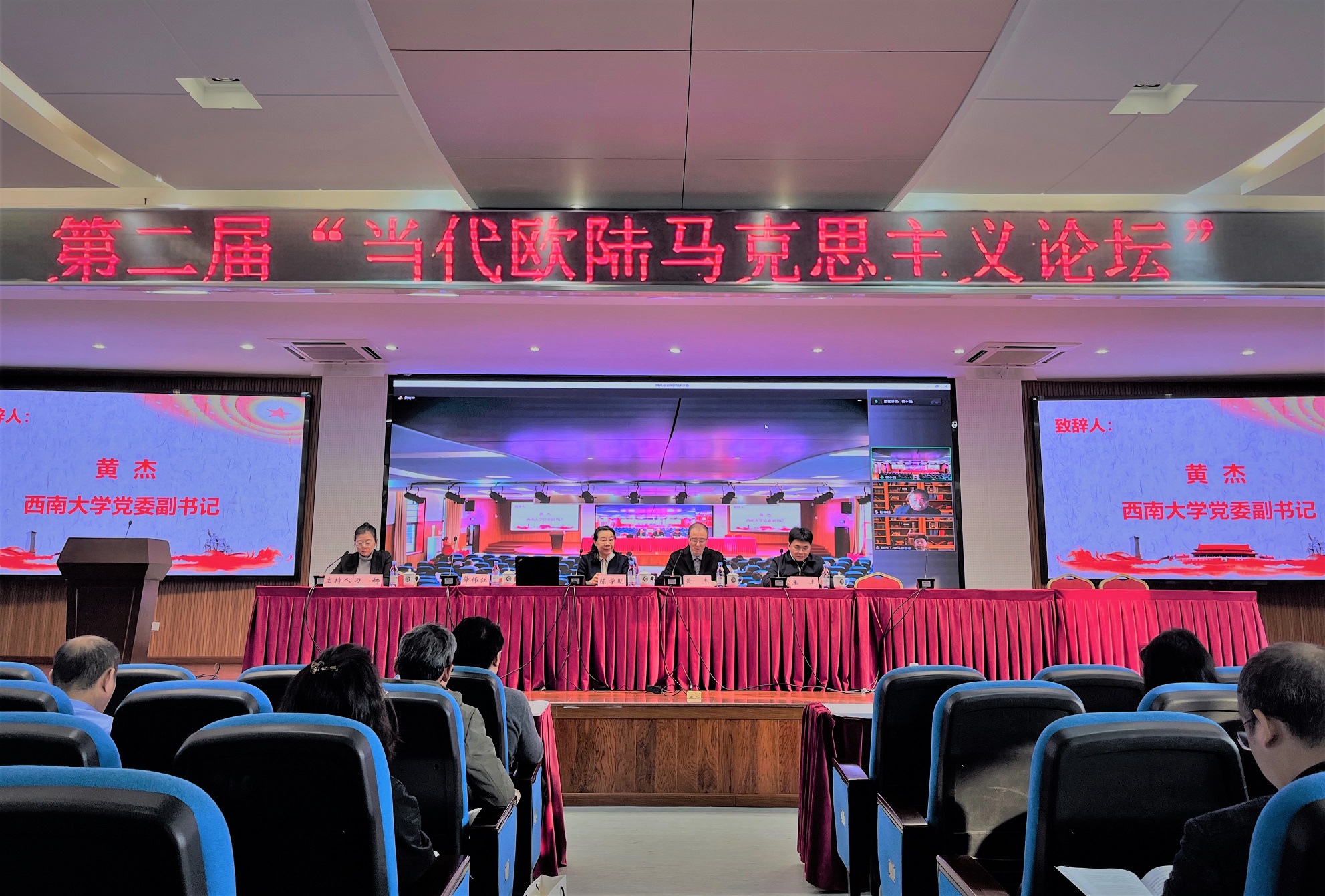 11月26日,由西南大学马克思主义学院和西方马克思主义研究所主办,古典思想传统与欧美马克思主义发展研究科研团队承办的第二届“当代欧陆马克思主义论坛”召开。学校党委副书记黄杰,当代国外马克思主义研究会名誉会长陈学明,中国马克思主义研究基金会秘书长、《理论视野》杂志社社长薛伟江出席开幕式。开幕式由《哲学研究》编辑刁娜主持。