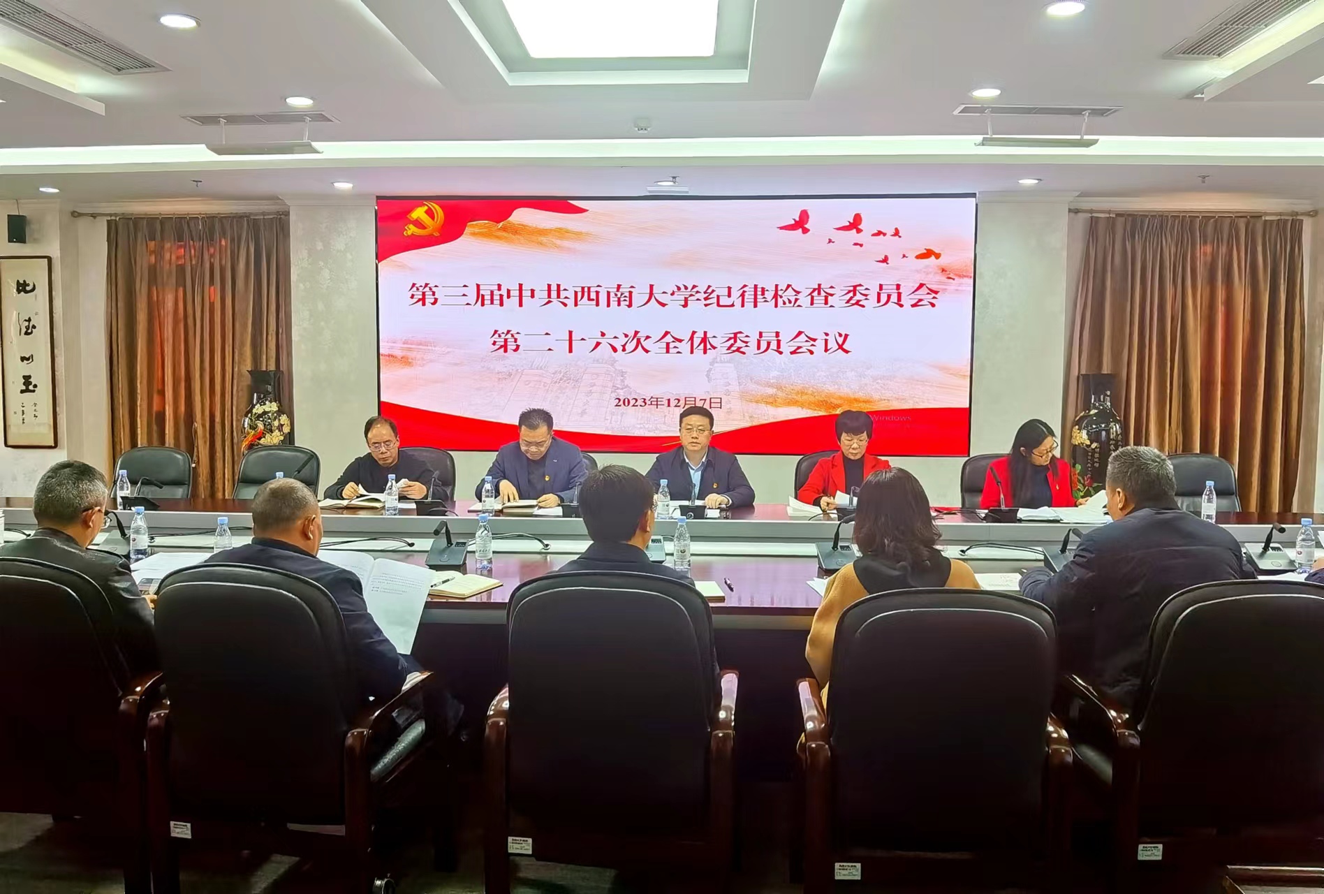 12月7日下午,第三届中共西南大学纪律检查委员会第二十六次全体会议召开,传达学习上级会议文件精神,通报研究有关工作。学校党委副书记、纪委书记夏玉峰主持会议,纪委委员参加会议,纪委办监察处巡察办副处级以上干部列席会议。