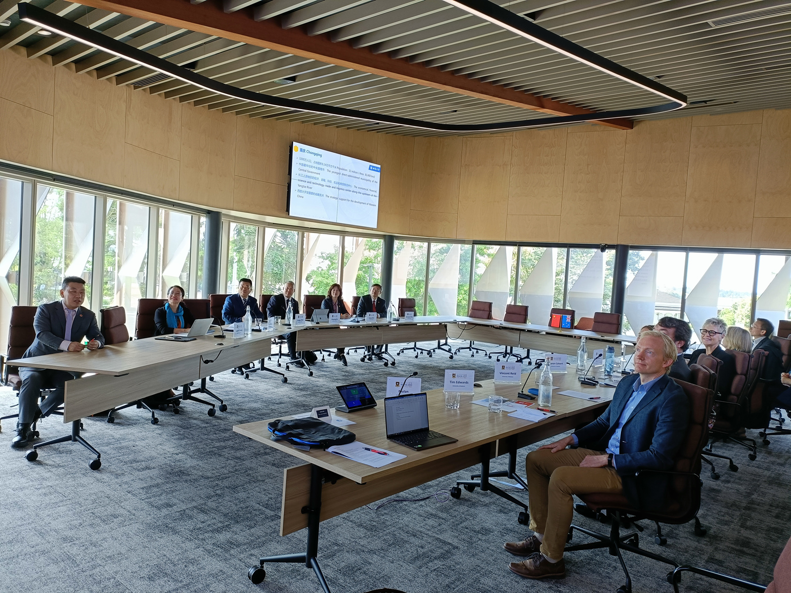 葛信勇一行首先访问怀卡托大学,受到该校副校长罗宾·朗赫斯特的热烈欢迎。葛信勇介绍了学校的办学情况和国际化现状,他表示,十年来两校聚焦人才培养,合作项目已成为教育学部最受欢迎的海外实习品牌项目。罗宾回应,怀卡托大学一直高度重视与西南大学的合作关系,希望两校在现有教育专业的合作基础上,广泛拓展合作领域,促进两校国际化程度的提升。期间,葛信勇还看望了在该校做访问学者的学校教育学部钟婉娟副教授,感谢她为两校深化友谊所做出的努力。