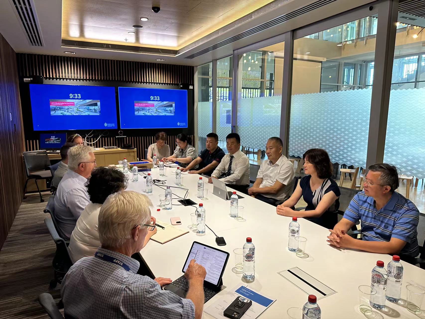 代表团访问的最后一站是詹姆斯库克大学。两校联合举办的动物科学专业中外合作办学项目于2020年首次招生,明年将迎来首届毕业生。两周前,该校校长西蒙·比格斯和副校长马库斯·莱恩来访学校。葛信勇表示,两校学科建设共通点多,希望进一步丰富合作形式、深化合作内涵,提高人才培养质量。副校长马库斯表示,詹姆斯库克大学对双方的合作深感自豪,致力于投入更多资源,力保项目取得成功,希望双方坦诚交流,精诚合作,助推双方国际化程度更上层楼。随后,双方举办联合管理委员会会议,就启动学生短期交流项目、联合培养博士生、联合申报国际实验室以及接受教育部首次评估等事宜交换了意见。期间,葛信勇慰问了来校交流访学的可尧·曾格博士,看望了联合培养的8名学生。