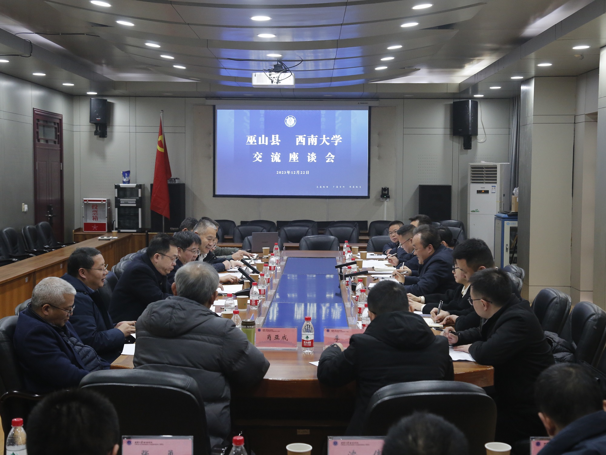 学校党政办公室、国内合作处、历史文化学院 民族学院、园艺园林学院、柑桔研究所、药学院中医药学院、乡村振兴战略研究院、附属中学,巫山县委办公室、县政府办公室、招商投资事务中心、教委、农业农村委、乡村振兴局、工业园区管委会,巫山中学等单位负责人参加座谈交流。