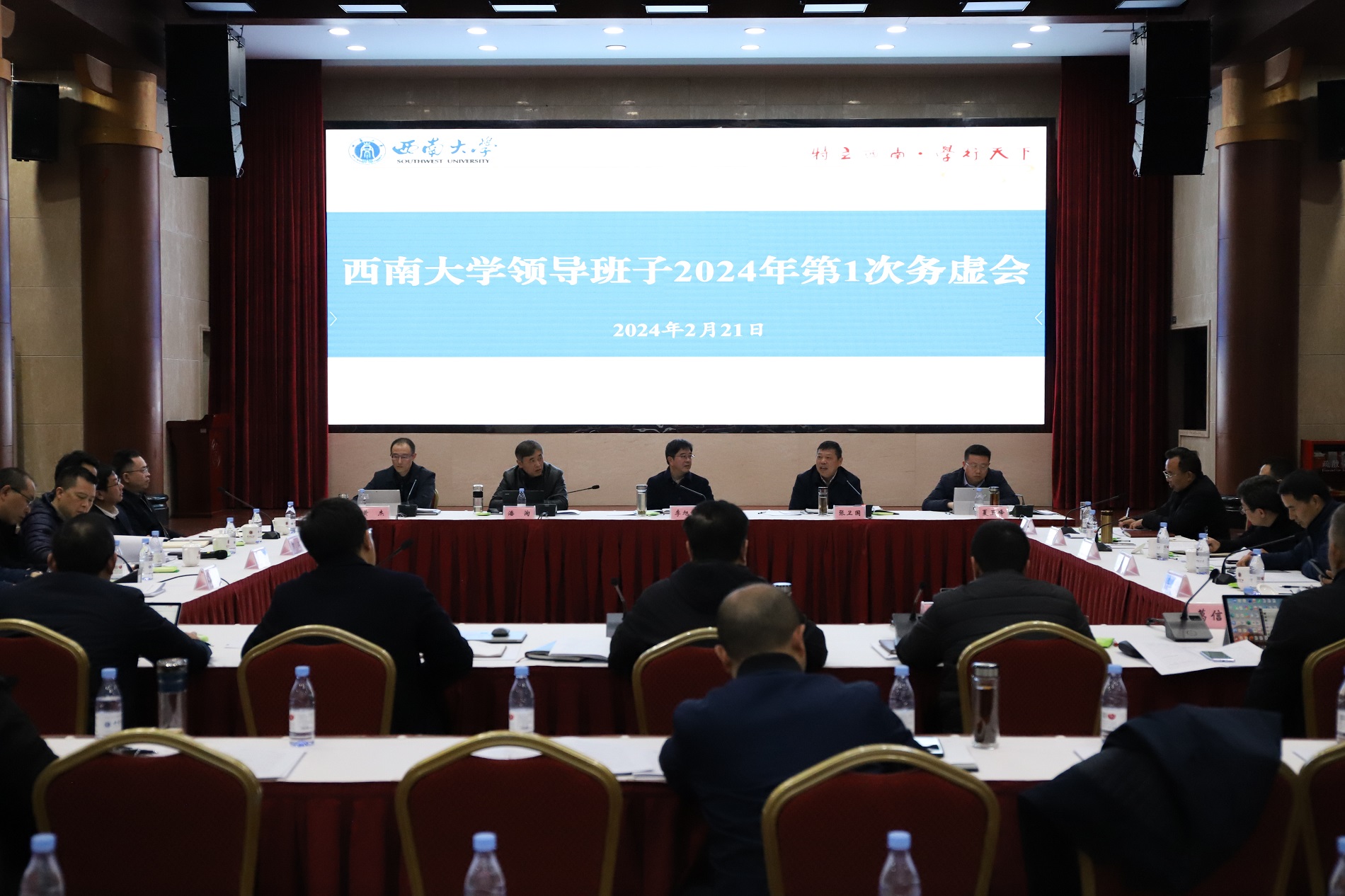 2月20日至21日,学校在东方红会议厅召开校领导班子2024年第1次务虚会,就学校改革发展及全年工作相关议题进行研讨。党委书记李旭锋、校长张卫国分别主持会议。