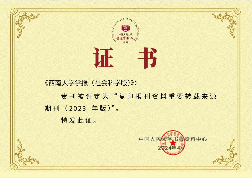 4月25日,中国人民大学评价研究中心正式发布了《复印报刊资料重要转载来源期刊(2023年版)》。学校《西南大学学报(社会科学版)》再次入选,《教师教育学报》首次入选。