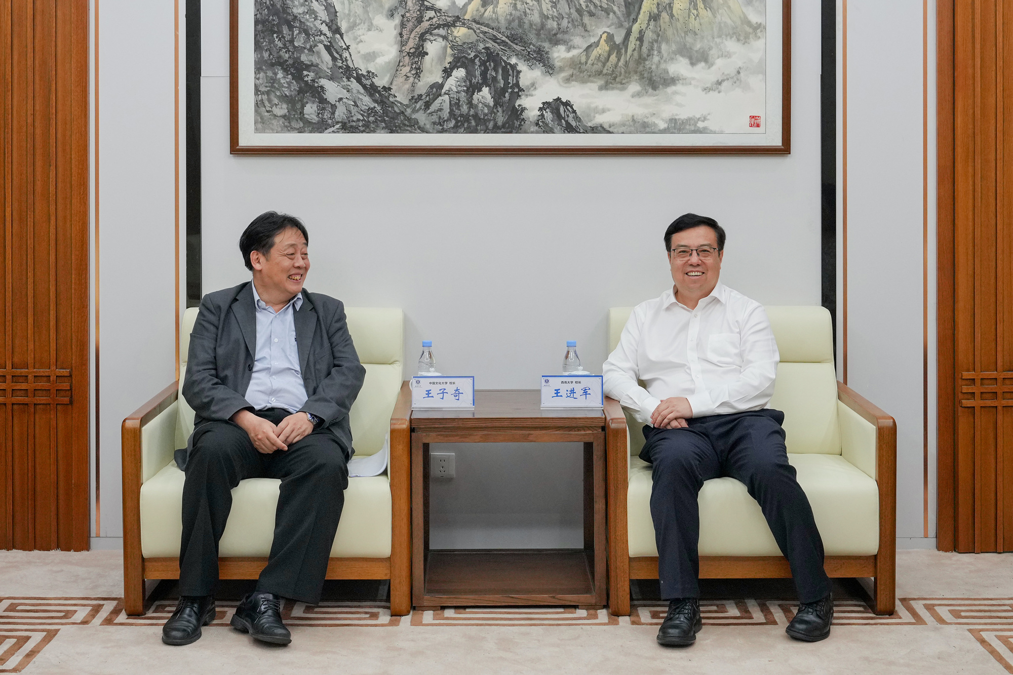 6月21日,台湾中国文化大学校长王子奇来校访问,西南大学校长王进军会见客人,港澳台办公室相关人员参加会见。
