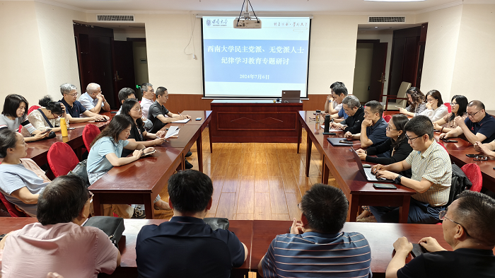 会议传达学习了市委统战部有关文件精神。围绕在学校六月召开的各民主党派主副委及各统战团体负责人联席会议上通报的《西南大学关于支持各民主党派、无党派人士开展纪律学习教育的工作方案》,各民主党派基层组织负责人和无党派人士代表积极发言,交流了各民主党派基层组织和无党派人士开展纪律学习教育的具体方案,汇报了开展纪律学习教育的进展情况。与会同志共同观看了警示教育片《警钟》系列典型案例,并围绕会议主题积极座谈交流、深入研讨,分享了心得体会。大家纷纷表示,开展纪律学习教育对各民主党派、无党派人士加强自身建设、提升能力本领、改进思想作风和工作作风具有重要意义,要切实筑牢法纪观念,增强自我约束意识,不断弘扬和传承廉洁自律的优良传统。