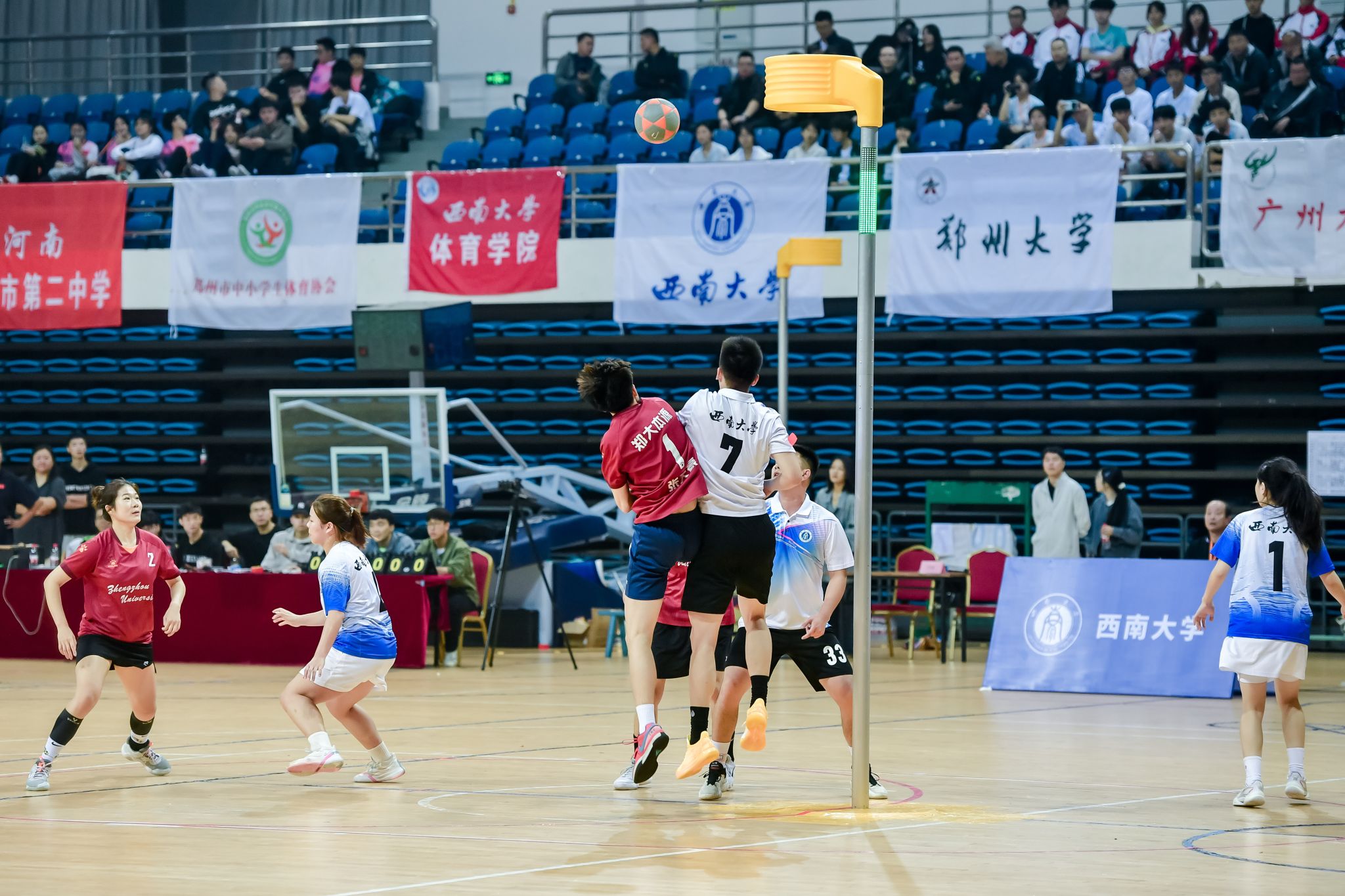 10月11日至14日,由国家体育总局社会体育指导中心、重庆市体育局主办,西南大学体育学院承办的第13届全国荷球锦标赛在学校中心体育馆顺利举行。国家体育总局社会体育指导中心党委书记、主任刘君柱出席开幕式并宣布比赛开幕;学校党委副书记黄杰在开幕式上致辞,代表学校对参赛队伍、裁判员和领导、嘉宾表示欢迎;国家体育总局社会体育指导中心运动项目二部副主任江志华,重庆市体育局群体处处长董海山、副处长朱剑,体育学院主要负责人等出席开幕式。