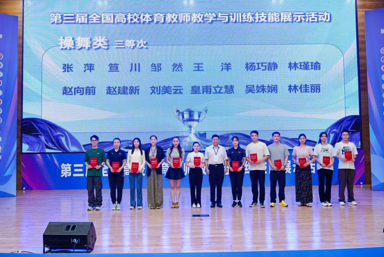 本次展示活动分为网络评审与现场测试两个环节,其中网络评审考察教师说课和教学(指导)水平,现场测试则从基础体能、专项体能、专项技能等方面考察教师的综合能力。学校三位教师经过前期精心准备和现场稳定发挥,凭借过硬的专业素养、精湛的教学水平和良好的精神面貌,在众多参赛选手中脱颖而出。最终,吕远洋获操舞类项目一等次、庄岩获排球项目一等次、林瑾瑜获操舞类项目三等次,以优异成绩展现了学校教师的良好精神风貌和扎实专业功底。