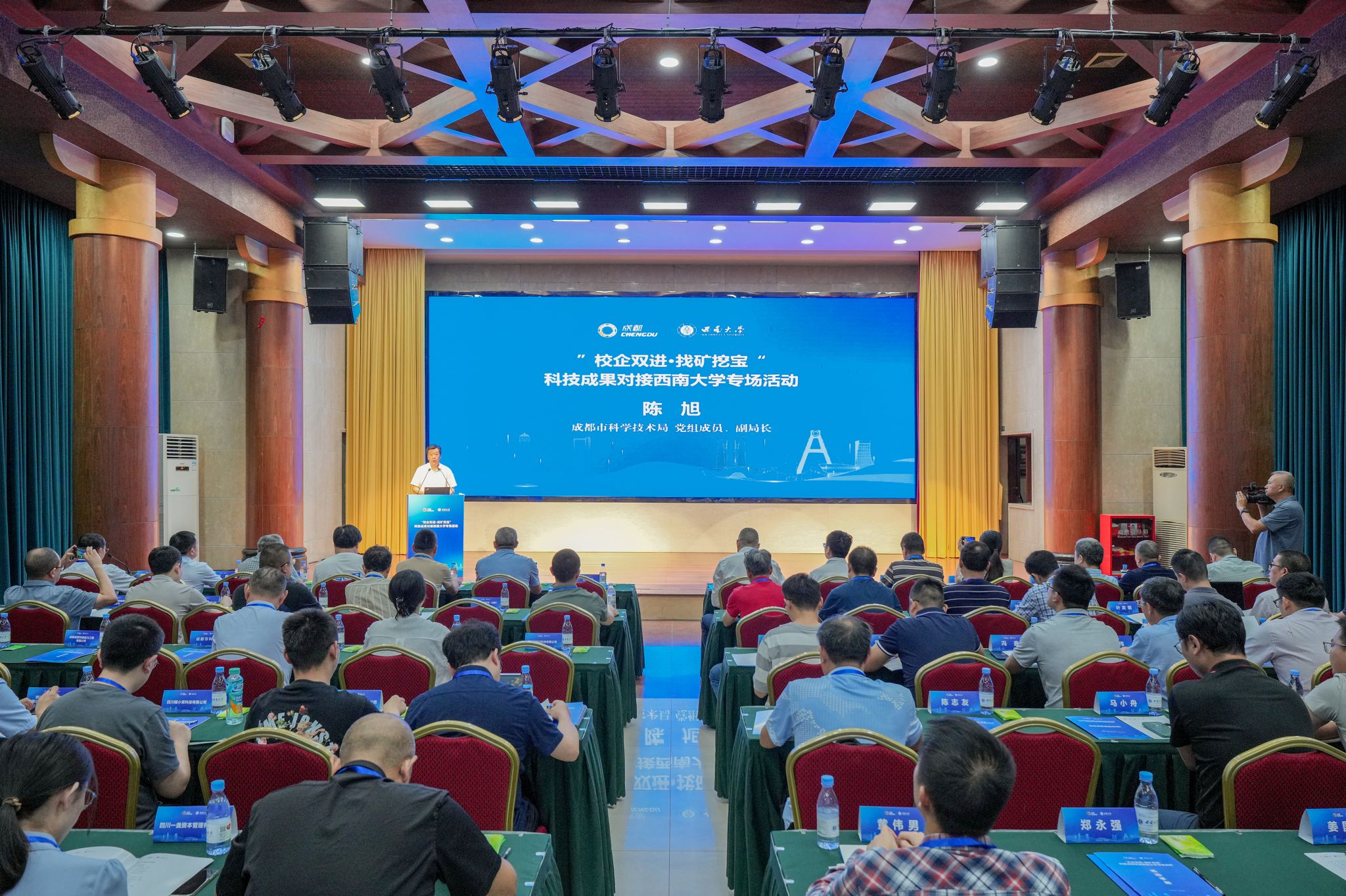 陈旭在致辞中表示,成渝双城山水相依,成都市持续厚植技术创新、要素集聚、平台溢出、成果转化“四大优势”,创新策源能力加速跃升、产业发展实力日益雄厚、创新生态持续优化。西南大学拥有众多优势学科领域和科技成果,与成都市合作空间广阔,合作潜力巨大,希望西南大学更多创新团队与成都市企业加强对接交流,深化产学研用融合,推动市校合作朝着更深层次迈进。