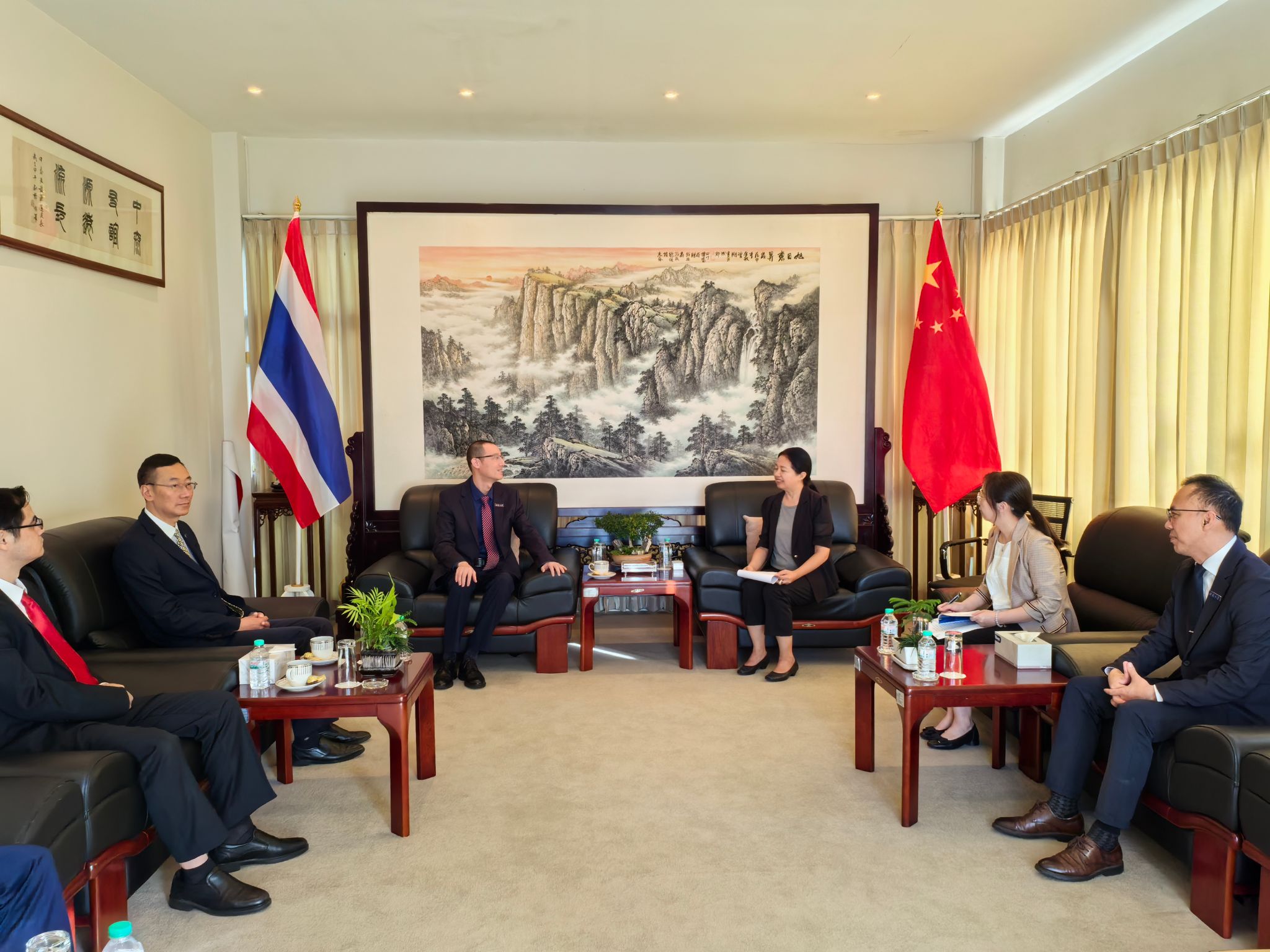 在访问期间,学校代表团还专程拜访了中国驻孔敬总领事馆,感谢总领馆对孔敬大学孔子学院给予的指导、支持与帮助,并与杨宁副总领事就如何依托西南大学学科优势和办学特色促进中泰在教育、农业等领域务实合作进行了充分交流。此外,代表团还在孔敬大学教育学院院长伊萨拉的陪同下参观了孔敬大学附属小学,走进课堂观看志愿者教师的现场授课,与附属小学国际部的领导就双方附中、附小的未来合作进行了深入探讨。