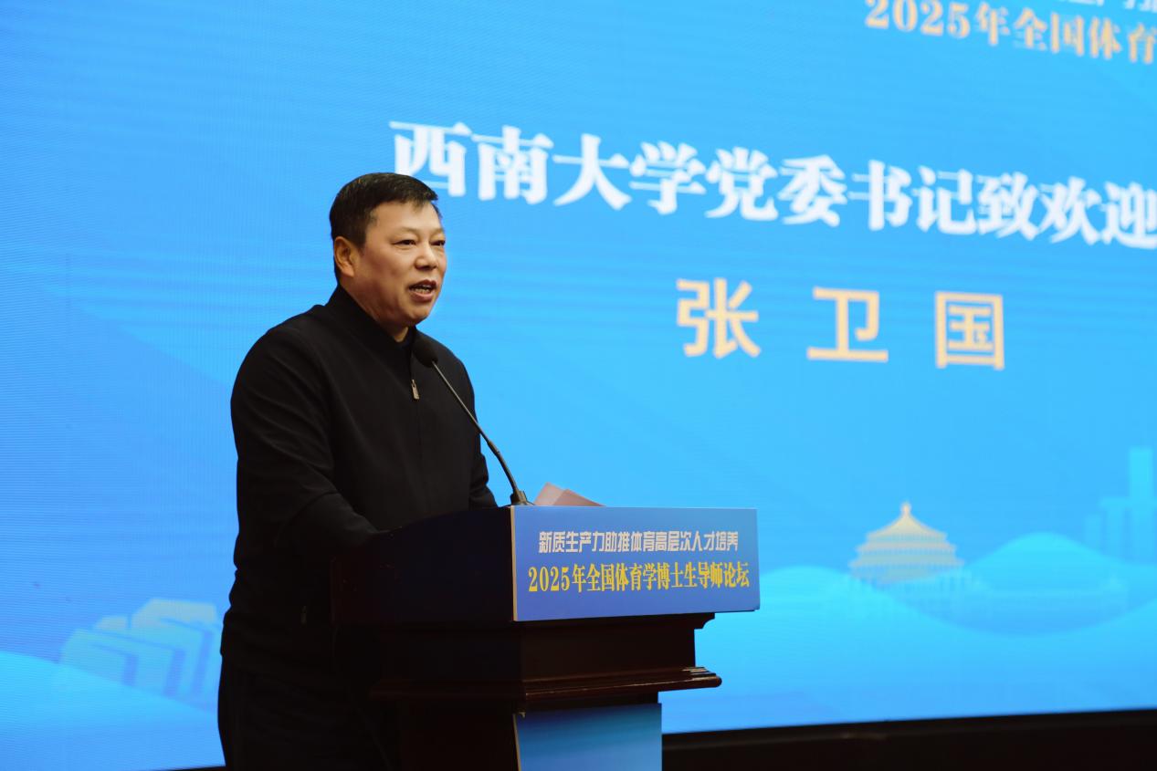 张卫国在致辞中对各位领导专家的到来表示热烈欢迎,感谢大家对西南大学发展的关心和支持,并介绍了学校办学基本情况和体育事业成绩。他指出,以人工智能为代表的新质生产力是体育高层次人才培养的变量、增量和能量,希望通过本次论坛碰撞出体育学科研究生教育高质量发展的新理念、新路径,为体育强国建设和体育科学高质量发展贡献智慧和力量。