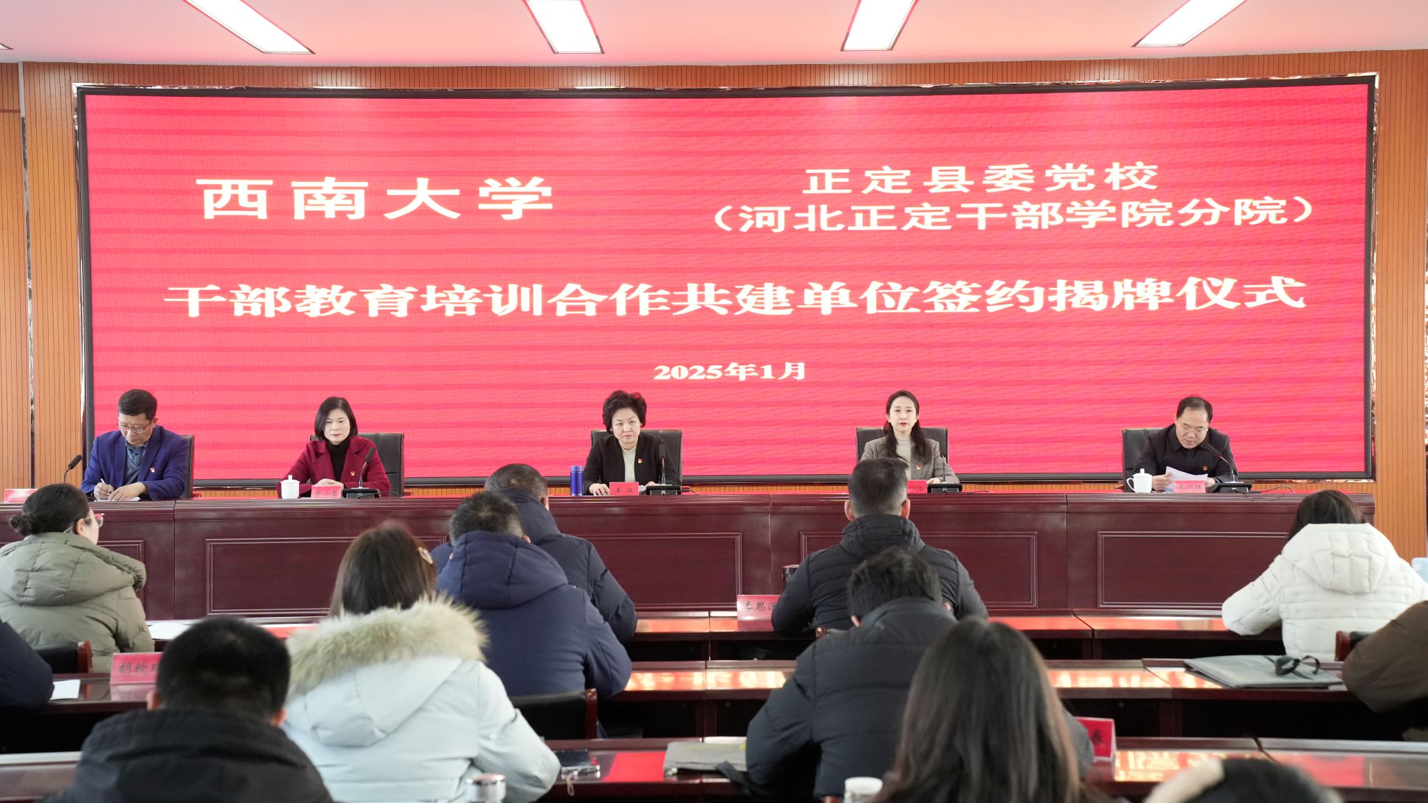 1月10日上午,学校与中共正定县委党校(河北正定干部学院分院)干部教育培训合作共建单位签约揭牌仪式暨西南大学青年干部人才能力提升专题研修班(第一期)开班式在正定县委党校举行。河北正定干部学院和西南大学党委组织部相关负责人出席仪式。