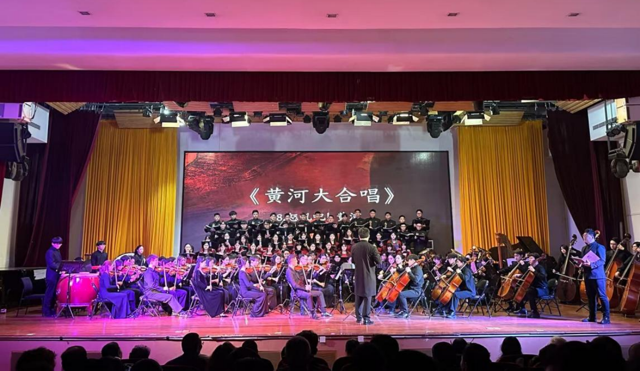 音乐会以关峡作曲的《第一交响序曲》拉开帷幕,在音乐学院副教授周楫的指挥下,交响乐团以激昂的旋律再现中华民族砥砺奋进的壮阔征程。重头戏钢琴协奏曲《黄河》由音乐学院陈若旭教授领衔演奏,作品包含《黄河船夫曲》《黄河颂》《黄河愤》《保卫黄河》四个乐章,以钢琴与交响乐的对话展现黄河儿女的坚韧抗争精神。中场休息后,《黄河大合唱》震撼登场,《黄河船夫曲》《黄河颂》《黄河之水天上来》《黄水谣》《保卫黄河》等系列经典作品更是在铿锵号子、深情朗诵、方言对答等创新形式中精彩呈现……在艺术之声中传承红色基因、致敬峥嵘岁月。