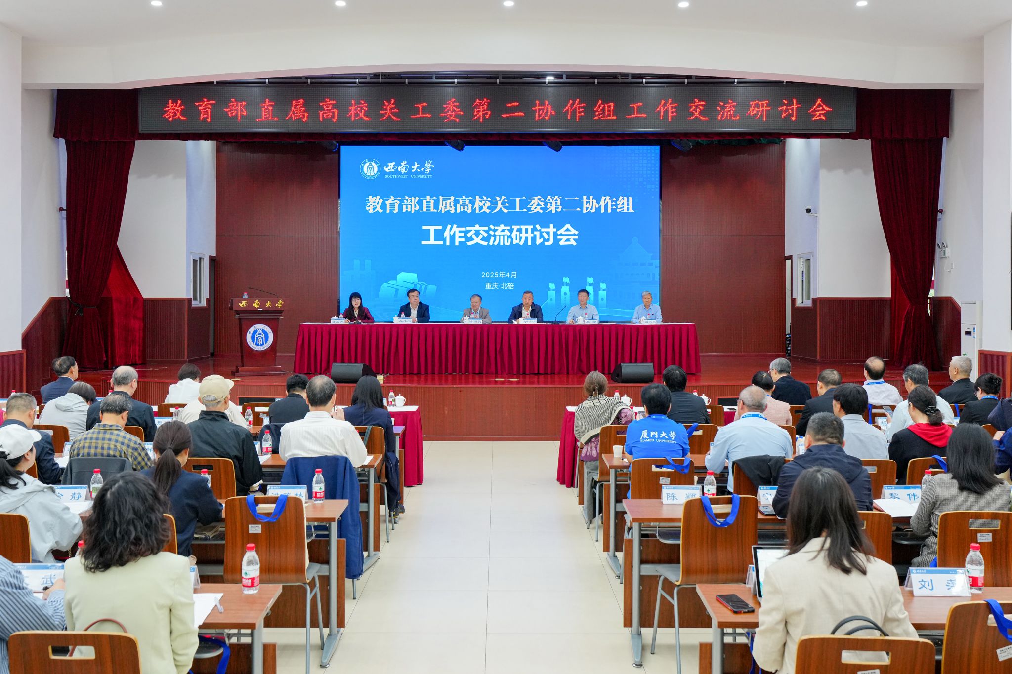 4月23日,教育部直属高校关工委第二协作组工作交流研讨会在学校召开。会议以“服务教育强国建设,推进关工委工作高质量发展”为主题,围绕基层“五好”关工委建设等方面进行交流研讨。教育部关工委常务副主任傅国亮、重庆市教委二级巡视员蔡理、重庆市关工委常务副主任于学信,西南大学校长王进军出席会议。会议由副校长赵玉芳、校关工委常务副主任宋乃庆分段主持。