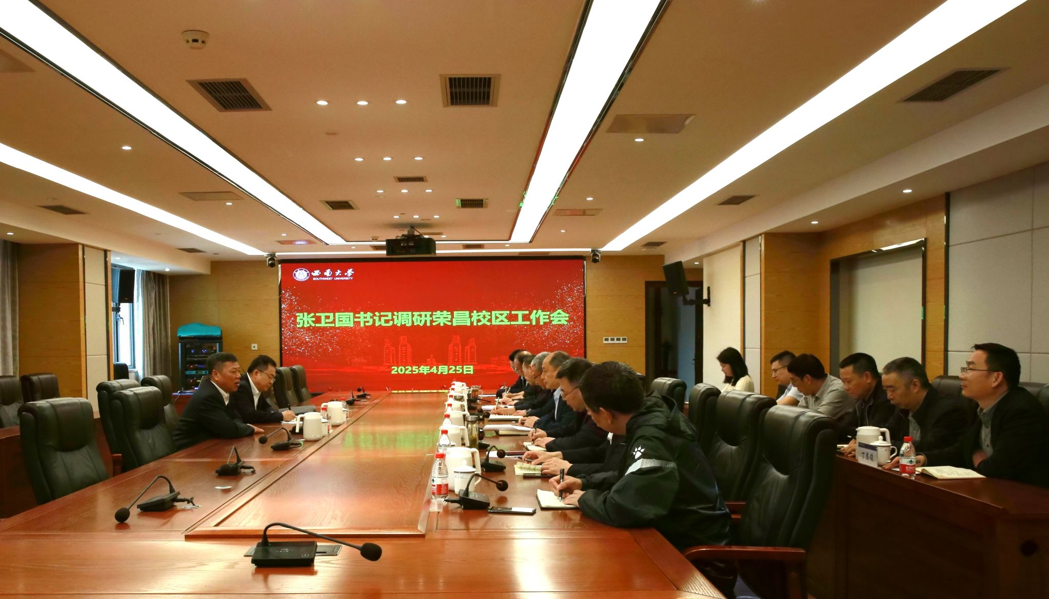 4月25日上午,党委书记张卫国到荣昌校区调研指导工作。学校党政办公室负责人,荣昌校区党工委、管委会领导班子及各内设管理服务机构负责人,基本建设管理处、后勤集团荣昌校区服务中心等单位相关负责人参加调研座谈会。
