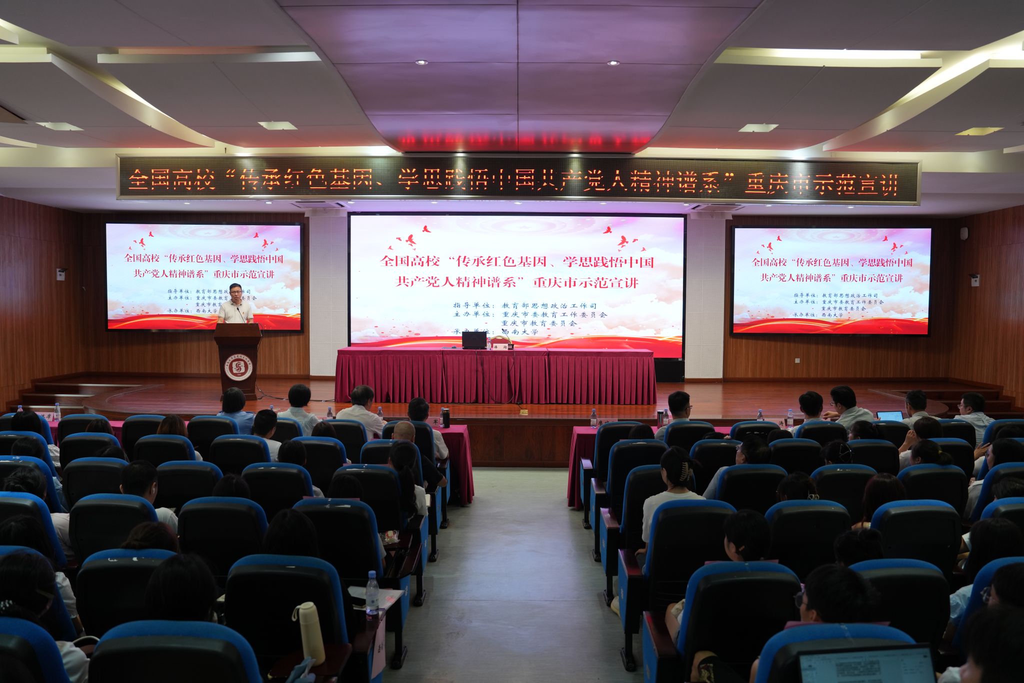 塑造高尚精神文化。强化理想信念教育,举办“传承红色基因、学思践悟中国共产党人精神谱系”宣讲会、组织社会主义核心价值观艺术创作等,引导师生筑牢理想信念基石。弘扬教育家精神和科学家精神,打造以杰出校友袁隆平院士、吴明珠院士、侯光炯院士等为原型的校园原创话剧,组织排演《问稻》《大地之子》等系列文艺作品。侯光炯纪念馆和袁道先科学家精神教育基地入选国家级科学家精神教育基地。发挥校史育人功能,编写《西南大学记忆》、西南大学口述史等。连续举办5届“玉兰文化节”、5届“玉兰诗会”、5季“校史之夜”,开展历史文化节、昆虫文化节等各类具有学科特色的文化活动,逐步实现“院院有品牌、月月有活动”。构建“课程+品牌+基地”体系,发挥文化素质教育基地等作用,传承中华优秀传统文化,打造校园文化品牌矩阵,创作高校原创文艺精品,编排“红岩印象”“红岩组歌”艺术展演,传承红色革命文化。