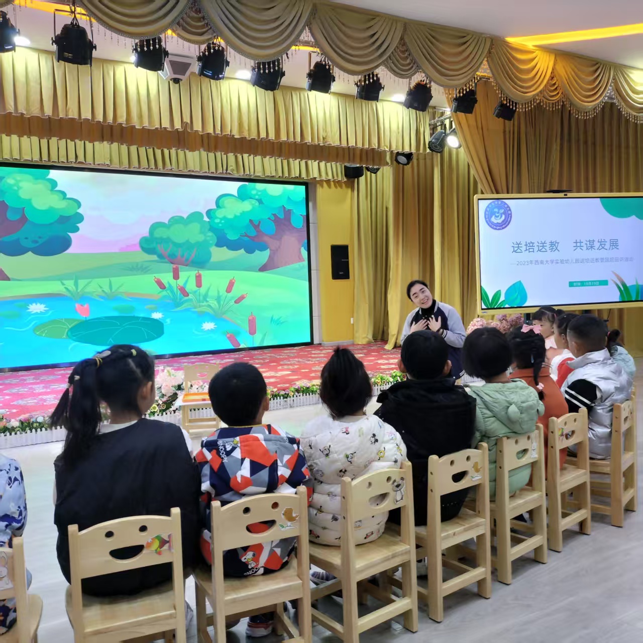 融合共生,构建辐射引领新格局。赴云南、西藏多地送培送教,惠及教师2000余名;定点指导区内幼儿园20余所,指导大学生见、实习1000余人次,接待国内外参观交流3000余人次。