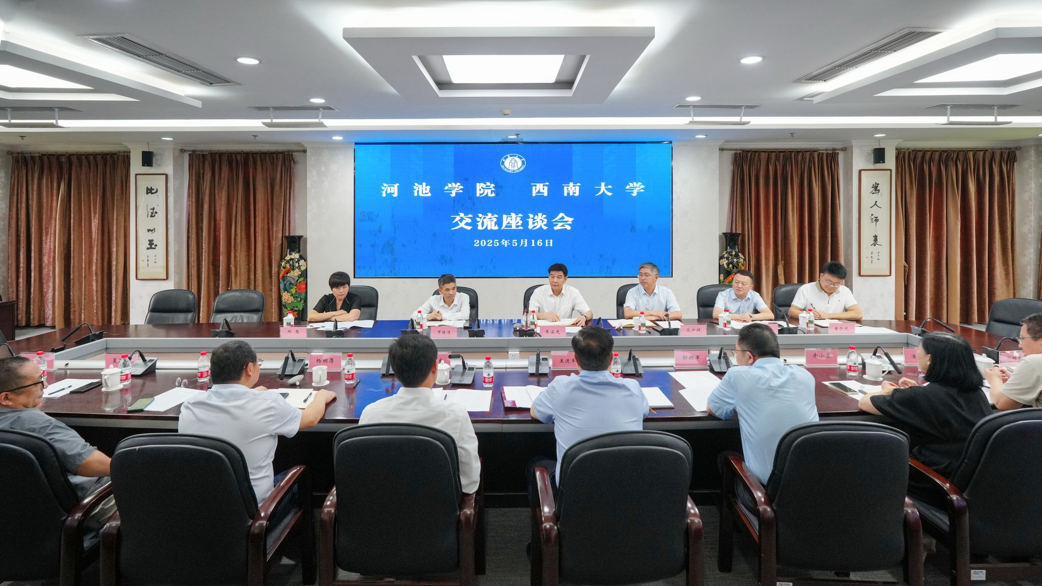 5月16日,河池学院党委书记韦安光、校长马少健一行来校考察交流。学校校长王进军,副校长白显良出席交流座谈会,会议由白显良主持。