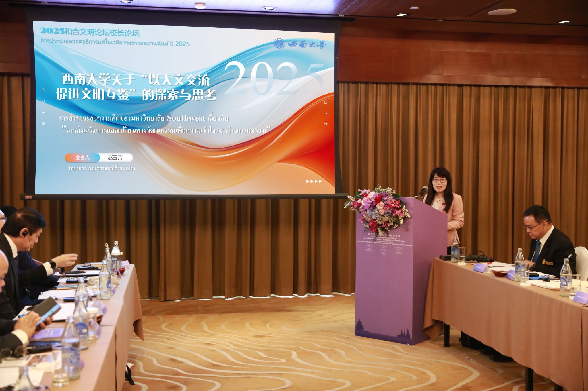 6月9日至12日,副校长赵玉芳应邀赴泰国参加2025和合文明论坛,学校党政办公室、国际学院相关人员随团出访。