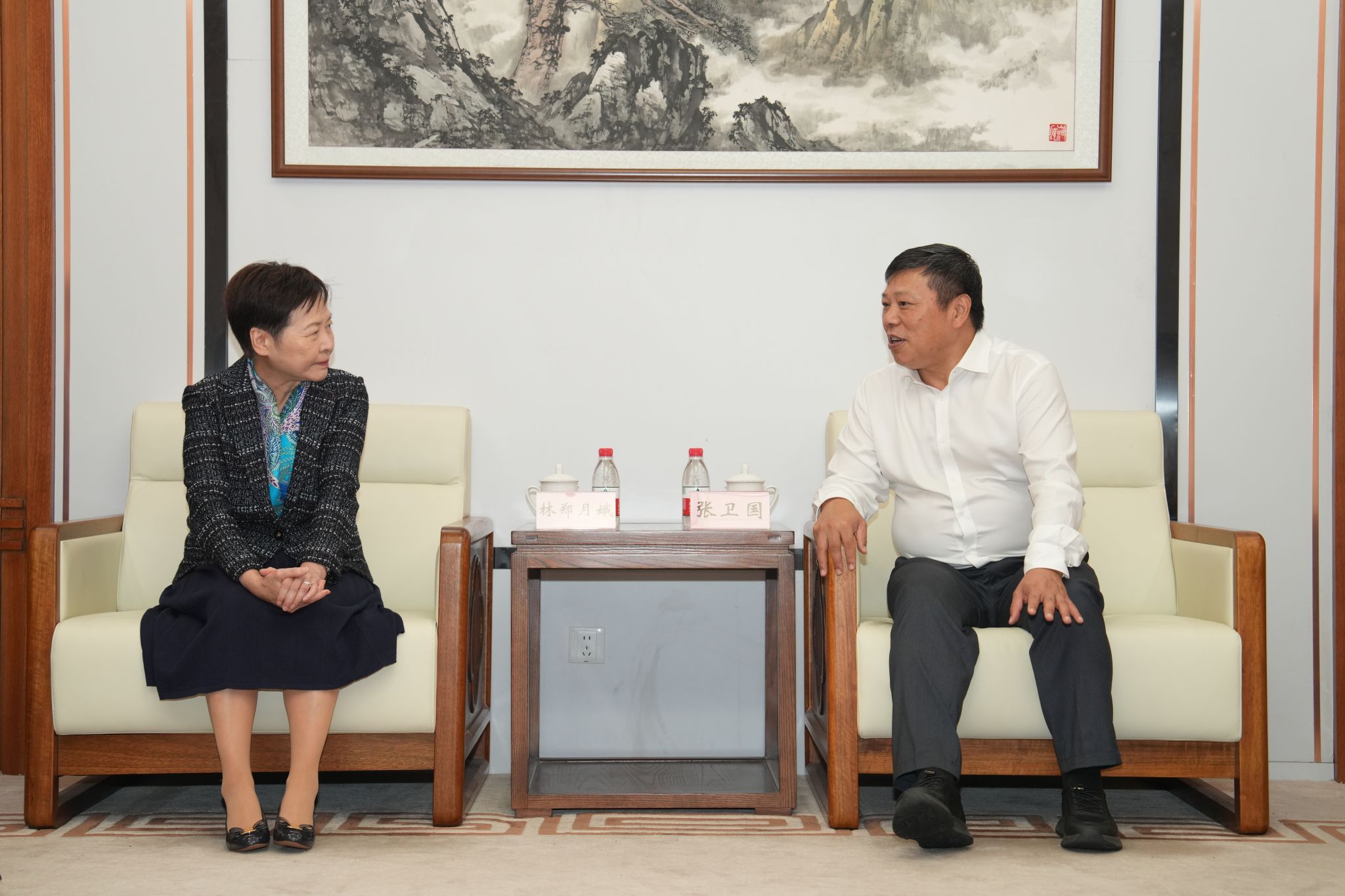 报告会前,张卫国会见了林郑月娥女士一行。到访期间,林郑月娥女士一行还参观了学校校史馆。