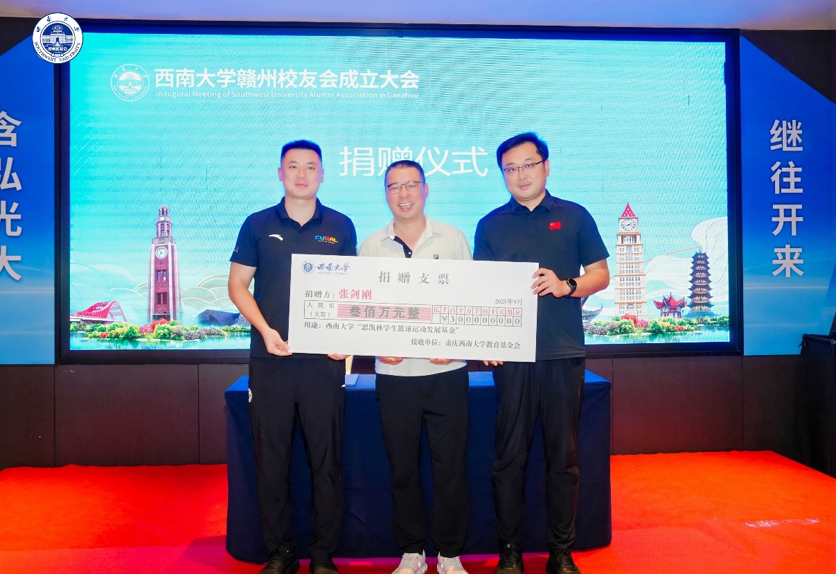 9月20日,副校长葛信勇,对外联络办公室主任、校友总会秘书长唐军,校体委办公室主任鲁冠,西南大学男子篮球队主教练王智等一行前往赣州接受捐赠。