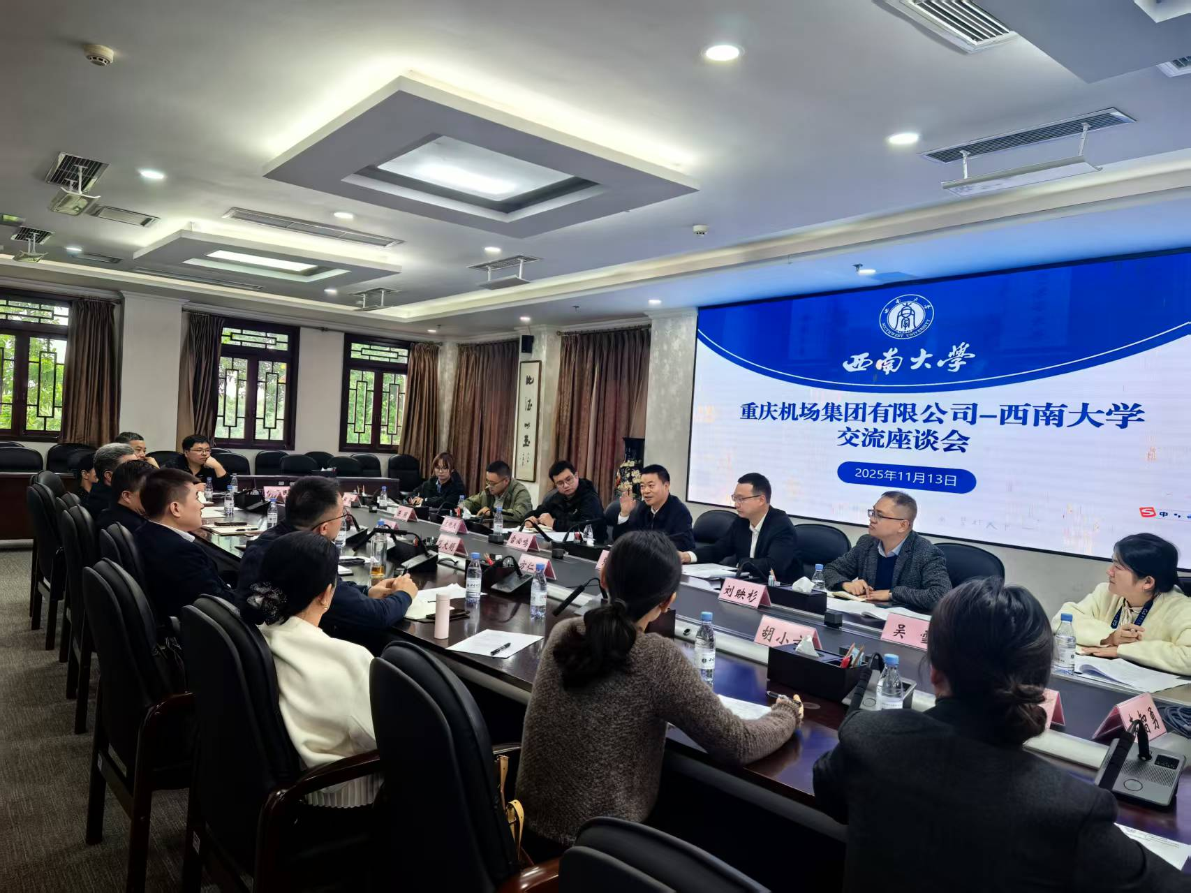 雷必鸣介绍了集团的总体情况、与学校的未来合作目标及目前亟需解决的关键问题,希望与西南大学在科技创新、安全管理、人才培养等方面开展多方位合作,共同开展前瞻性研究,推动机场可持续发展与航空安全保障。