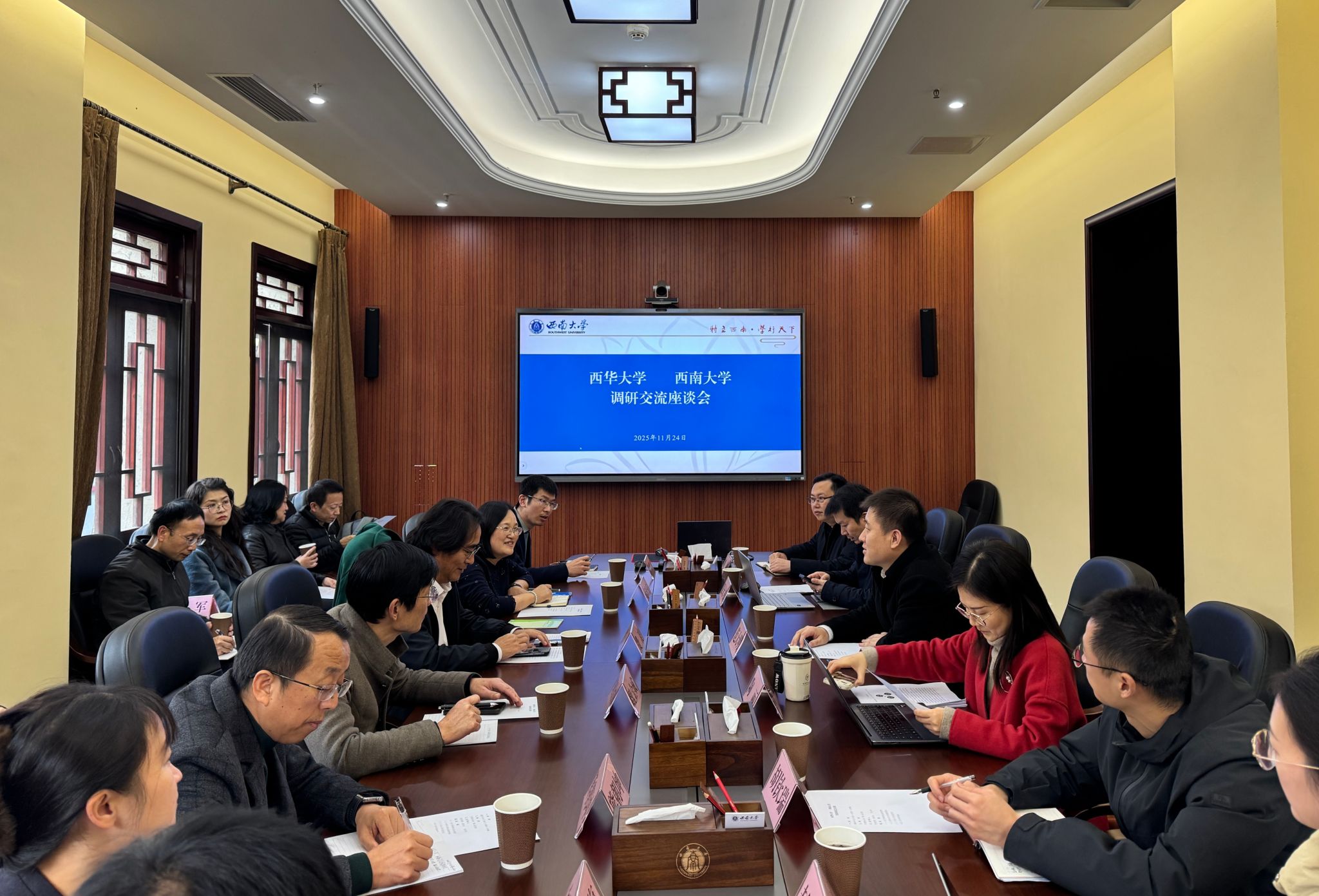 11月24日,西华大学副校长费凌率团来校座谈交流,学校副校长范大明出席并主持会议。双方围绕教育教学事业发展规划和教育数字化建设工作等方面进行深入讨论。