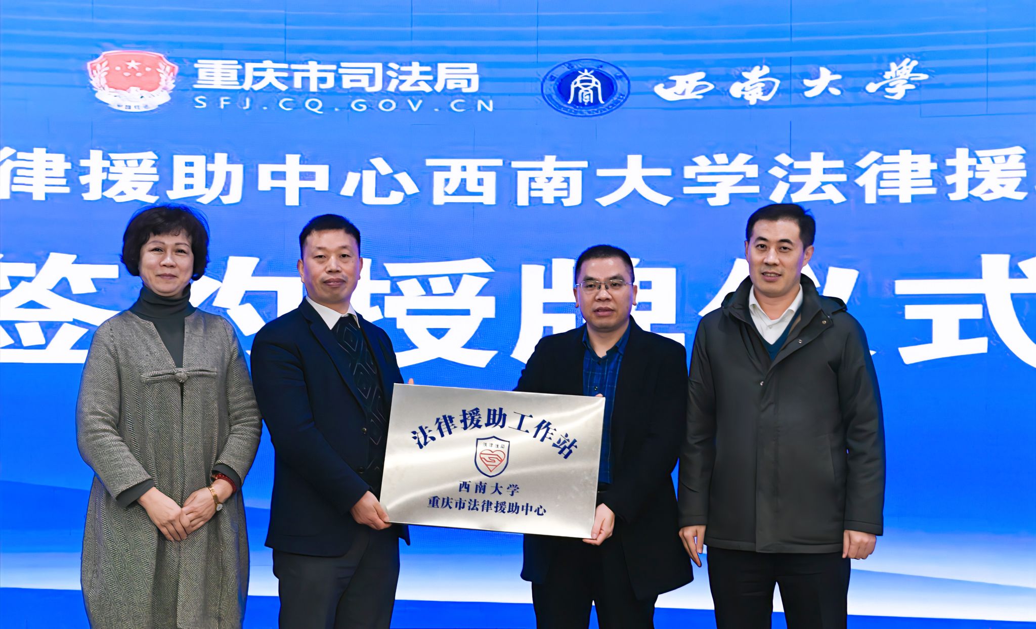 12月4日,“重庆市法律援助中心西南大学法律援助工作站”签约授牌仪式在学校举行。副校长白显良、重庆市司法局二级巡视员唐文英为工作站授牌。