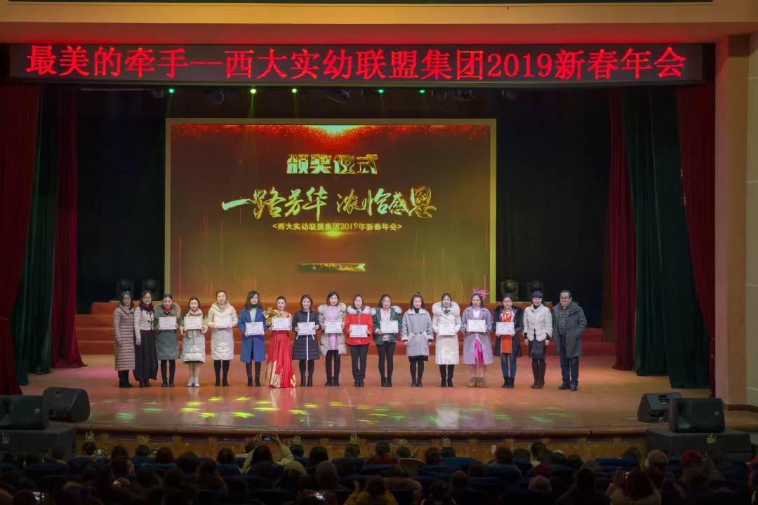 年会由西南大学实验幼儿园统筹策划,各姊妹园广泛参与,精心准备。节目热闹、喜庆、温馨,精彩纷呈,舞蹈、哑剧、快板等形式多样的节目无不展现幼师风采,体现了集团和谐向上的美好形象。同时,年会还颁发了西大实幼联盟集团首届先进个人和优秀成果荣誉证书。