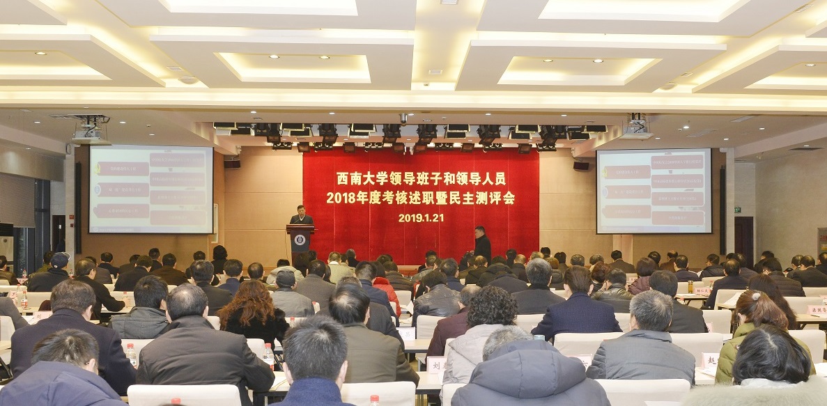 根据教育部人事司《关于做好2018年直属高校领导班子和领导人员年度考核及干部选拔任用“一报告两评议”工作的通知》要求,1月21日上午,学校召开校领导班子和领导人员2018年度考核述职暨民主测评会。