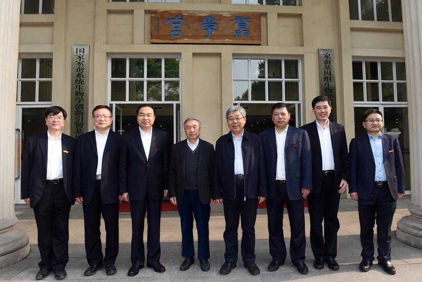 陈宝生一行参观考察了校史馆,听取了李旭锋书记、张卫国校长关于学校发展历程、办学传统,以及人才培养、科学研究、社会服务、党的建设等方面工作的介绍。随后,陈宝生一行考察调研家蚕基因组生物学国家重点实验室,中国工程院院士向仲怀教授和实验室主任、生物技术学院院长代方银教授介绍了实验室建设和蚕桑学科发展情况。陈宝生一行还先后听取了何宁佳教授、夏庆友教授、崔红娟教授有关科学研究进展的介绍,对学校生物学一流学科建设的进展和前景作了进一步了解。陈宝生一行最后来到农业科学研究院,全国高校黄大年式教师团队负责人李加纳教授介绍了“油菜教师团队”实验室建设、科研情况、育人机制等方面情况。