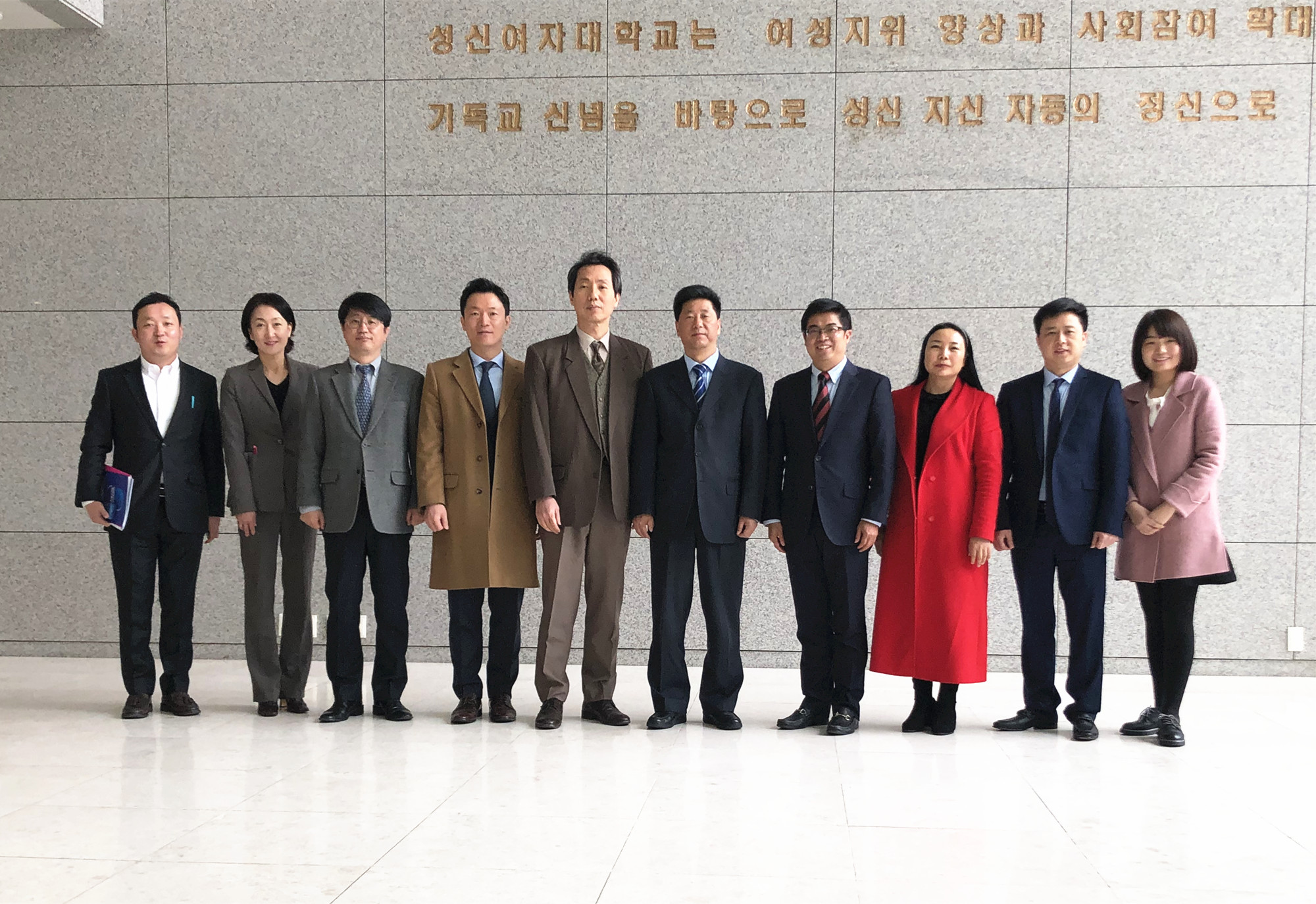 3月25日,代表团访问韩国诚信女子大学,与该校副校长金度亨、国际交流处处长沈斗辅等会谈。金度亨副校长希望今后双方在已签订的校际协议基础上进一步落实和拓展两校间的合作关系,靳玉乐副校长指出两校可先从学生短期交流项目开始逐渐拓展到教师交流、科研合作等项目的深入合作。随后,双方就学生短期交流、学分交换项目等进行了深入探讨。诚信女子大学是韩国著名的综合性大学,其美妆产业系在韩国高校专业排名中位列第一,学校于2018年11月与该校签订校际协议。