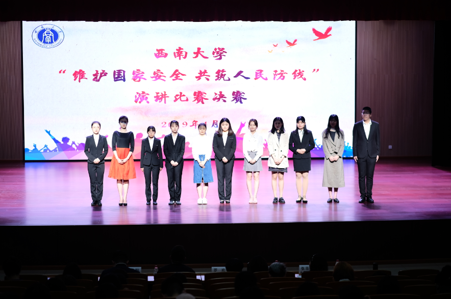 学校“维护国家安全 共筑人民防线”演讲比赛在圆顶三楼报告厅举行。经过初赛和复赛的层层选拔,来自12个学院的12名选手进入决赛。选手将国家安全与个人命运理念紧密相连,通过法治思想、网络安全和生态安全等角度,阐述维护国家安全的重要性,表达对国家安全的关切。精彩的演讲引起台下同学的共鸣,赢得阵阵掌声。最终,来自经济管理学院的贺文瑾同学和物理科学与技术学院的刘洋帆同学荣获一等奖。