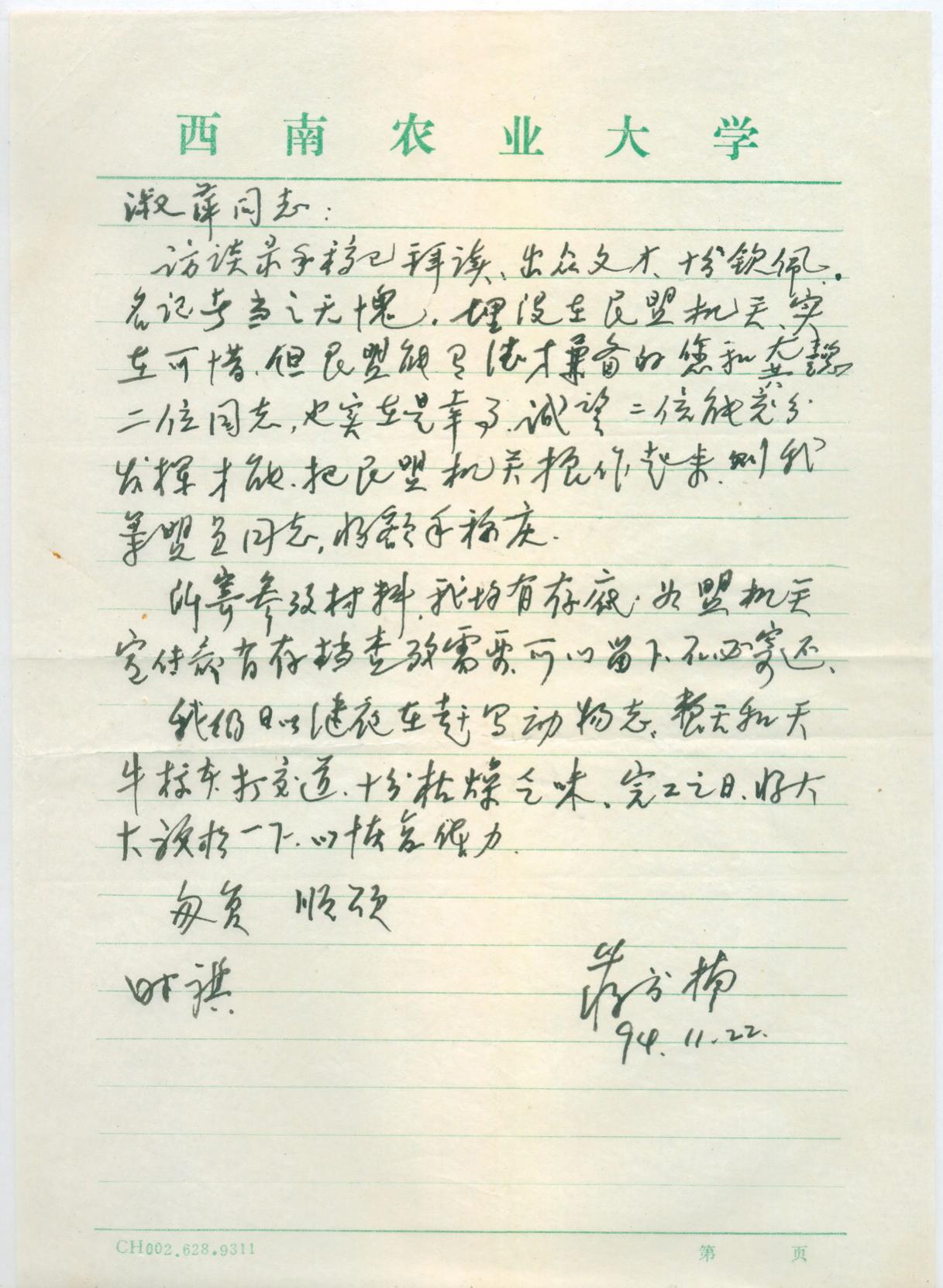 4月19日,这封信件时隔25年重新问世,出现在学校图书馆举办的“筚路蓝缕启桃李,鱼雁有信到西南”——西南大学书信记忆展(以下简称"书信展")中。