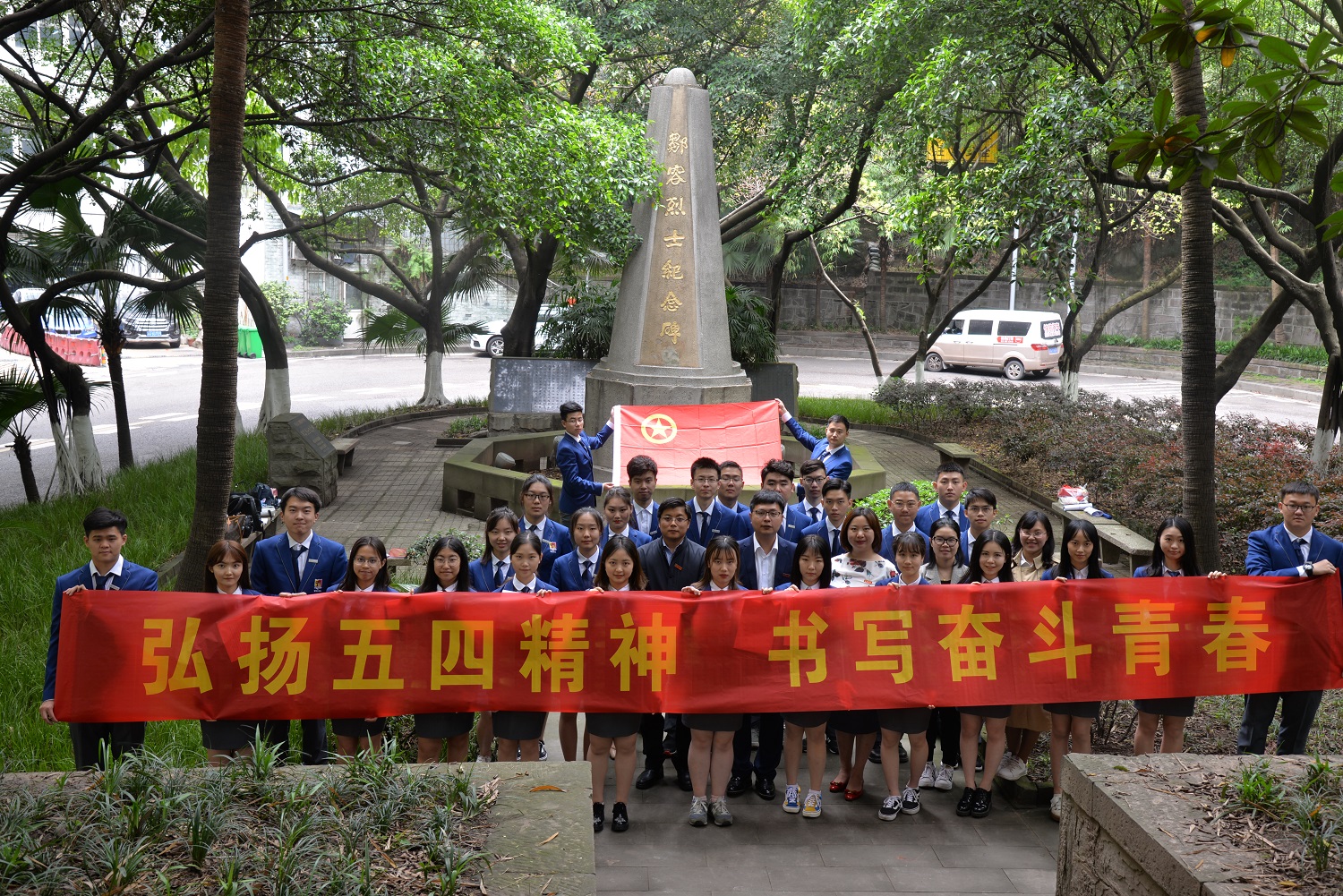 本次活动前,西塔师生还参观了邹容纪念碑,并面向团旗宣读“西南大学学子誓词”:“誓不负祖国人民 不负学校培育 不负亲人师恩”“弘扬伟大的五四精神”“我愿意——为中华民族伟大复兴奋斗终身”。据悉,本次活动是西塔学院贯彻落实习近平在纪念五四运动100周年大会上重要讲话精神的系列活动之一。
