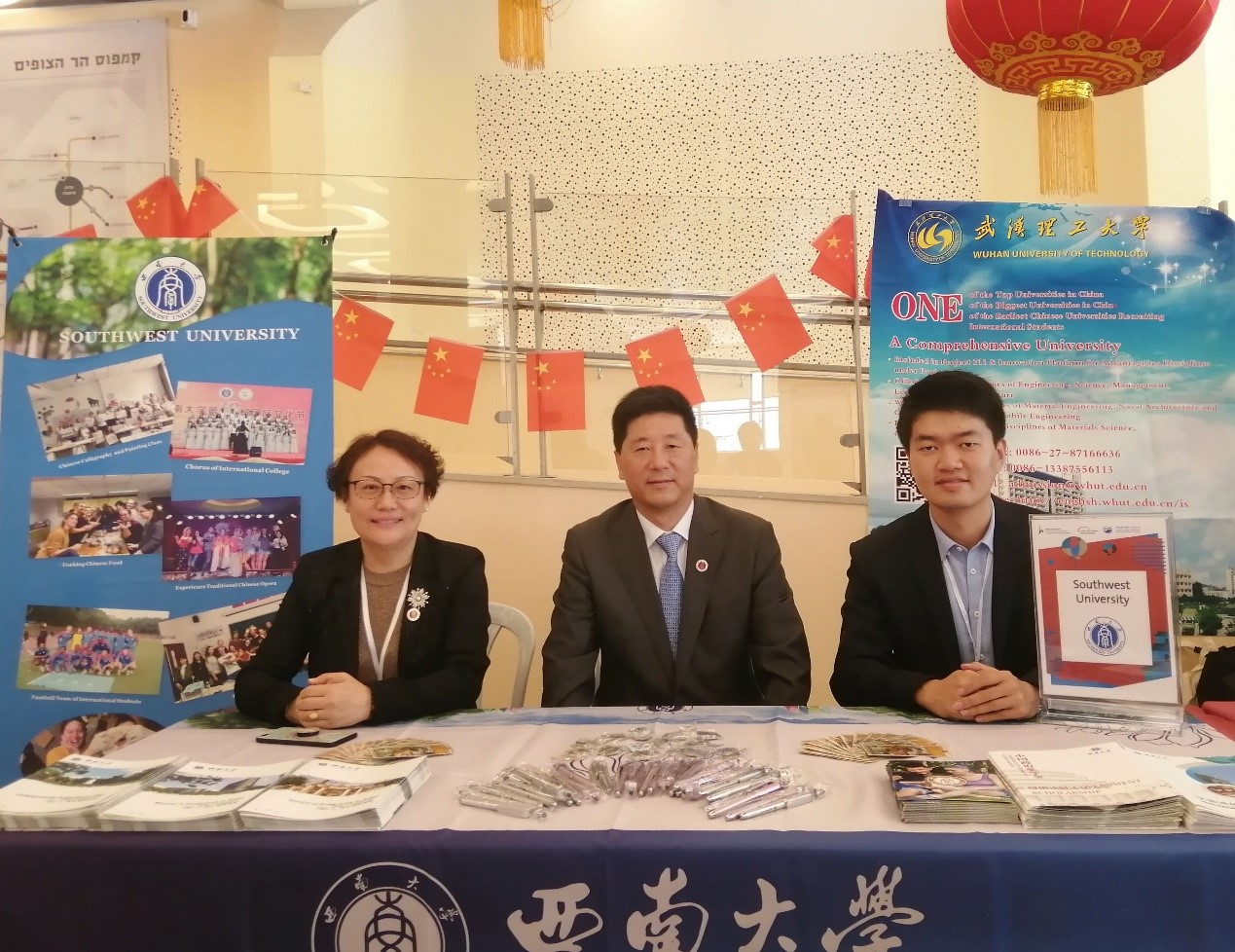 学校代表团先后在希伯来大学、海法大学、罗兰大学和塞维利亚大学参加高等教育展。西南大学展位以“魅力西大 宜居宜学”为主题,宣传海报中配以重庆夜景、学校概况和留学生品牌活动的图片介绍,在教育展中显得别具一格,吸引了众多学生和家长前来咨询交流。代表团还向咨询者介绍了学校的优势专业、全英文授课专业及各类奖学金情况等,给有来校留学意向的学生及家长分发了宣传资料,指导填写了《西南大学来华留学意向登记表》,并给他们赠送了精美的纪念品。此行的四次教育展吸引了近千人到现场观摩咨询,为学生搭建起了留学中国、了解中国的桥梁。