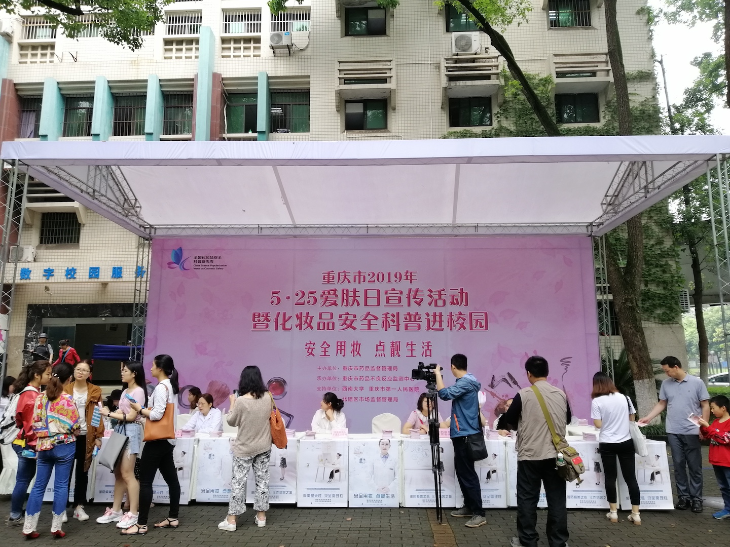 5月25日,“化妆品安全科普进校园”现场咨询活动在学校北樟树林成功举办。重庆市药品不良反应监测中心的工作人员发放化妆品知识宣传手册等科普资料,重庆市中医院皮肤科医生现场解答关于化妆品和皮肤问题的咨询,重庆市北碚区市场监督管理局工作人员现场接受关于化妆品监管的相关咨询,吸引众多师生前来咨询。到场师生纷纷表示,此次活动是一个很好的平台,指导大家合理预期化妆品功效,提升了自主选购化妆品鉴别力,增进了对化妆品安全的理解和认知。