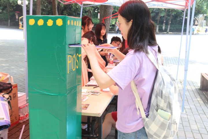 6月1日,学校在南北区樟树林举行“情系母校,遥寄简章”主题宣传活动,吸引众多在校学生参与。