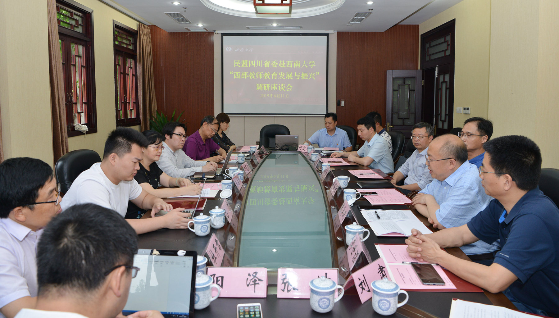 6月11日,民盟四川省委教育委员会委员、四川大学公共管理学院副教授、“西部教师教育发展与振兴”课题调研组成员秦永红率调研组专家一行六人来校调研。学校党委书记李旭峰会见了调研组各位专家,并对专家们的到来表示了热烈欢迎。