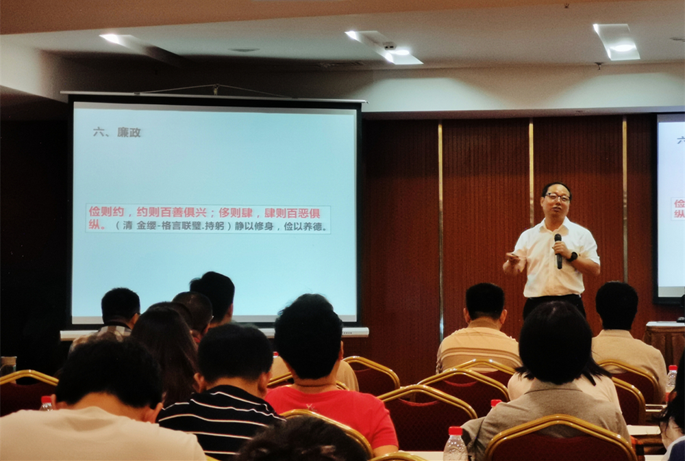 6月14日,在丹桂楼3楼10会议室,校长助理周光明以“学习习近平总书记——向经典借鉴人生智慧”为主题,为基本建设管理处、后勤集团的全体党员及中层干部作了学习习近平总书记系列重要讲话精神和习近平新时代中国特色社会主义思想系列讲座的第二讲。